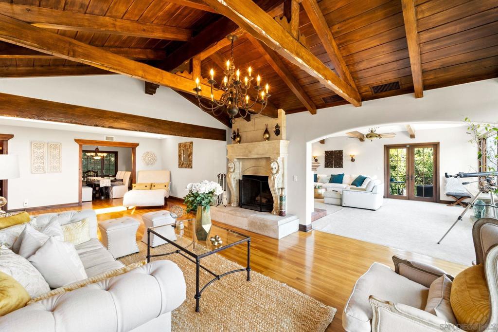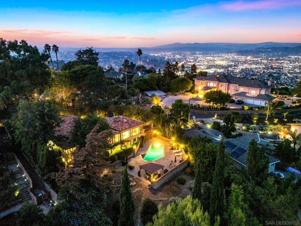 Sellers are under contract on another property. Property is priced to fly! Magnificent Tuscan Villa with endless Southeastern mountain vistas, perched on a tucked away cul-de-sac on highly sought after Mt. Helix. This two-story, 4,064 sf 4 bed/3 bath estate is situated on a half-acre usable lot, adorned with lush landscaping that provides shade and privacy. Copper clad wooden gates lead you under a grand stone wrapped entryway, through distressed Alder wood doors. Past the foyer you enter the picture perfect formal living room with exposed hand carved beams and arched ceilings. Giant picture windows in the living room and adjacent family invite endless views of trees and rolling mountains as far as the eye can see. Dual wood burning fireplaces in the Living room and Family room. Serene outdoor deck spaces, shaded by towering hundred year old trees that you never knew existed in San Diego County. Granite counter kitchen and elegant neighboring formal dining room. Four large bedrooms including a lower level private primary retreat with walk-in closet, large en-suite bathroom, wood burning fireplace and private outdoor space. Resort style pool with large paver deck with gazebo, fire pit and lounge seating areas galore. Incredible entertaining potential for family and friends, and plenty of space to build a guesthouse/ADU. The amount of charm and timeless architectural detail in this incredible estate simply must be seen to truly appreciate. Offering total privacy without feeling secluded, located just minutes away from the 8 Freeway. This home is truly special in every way.