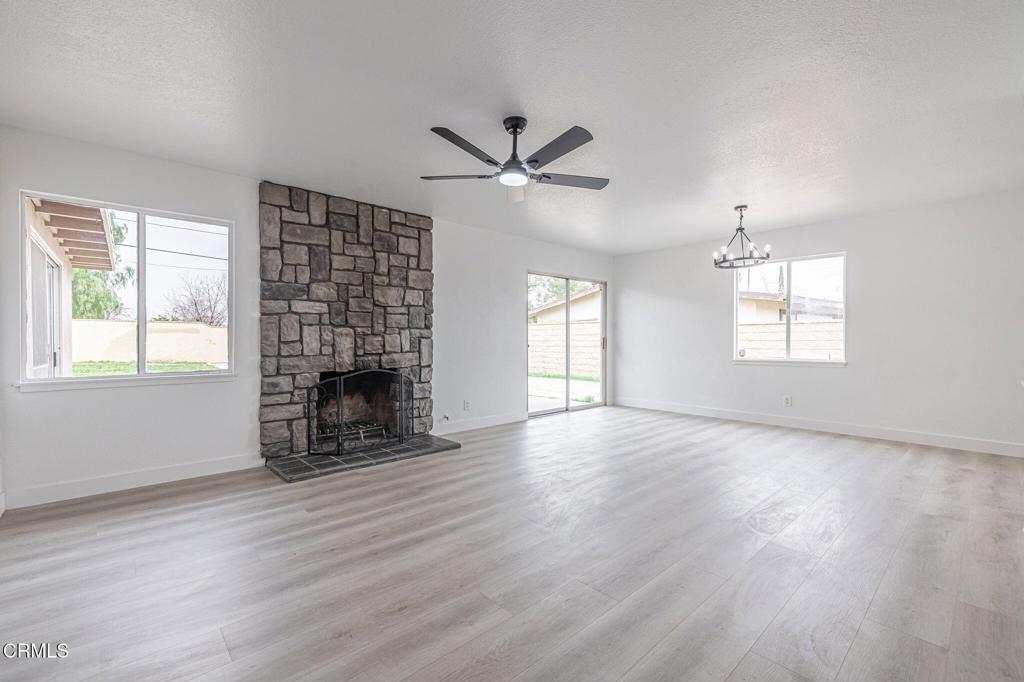Welcome to this stunning 4-bedroom, 2-bathroom single-story in prime West Palmdale! Completely renovated from top to bottom, this exceptional home sits on nearly a quarter acre and features 1,551 sq ft of living space, a brand new roof, newer A/C unit, and upgrades throughout. Step inside and immediately notice the inviting open layout with new paint, new wood laminate flooring, new lighting, and new ceiling fans. The gorgeous custom kitchen features upgraded quartz countertops, new shaker cabinets with matching hardware, a stainless steel stove, and a deep stainless steel sink with stylish matte black faucet. Abundant cabinetry provides impressive storage throughout. The open floor plan showcases a stunning stone fireplace stretching from floor to ceiling, with the dining room seamlessly connected for effortless entertaining. Each spacious bedroom offers comfortable retreat space, and the master bedroom features a sliding door with direct access to the backyard. Both bathrooms have been beautifully upgraded with granite counters, new mirrors, new lighting, and custom tile showers with built-in tubs. Step outside to your expansive backyard featuring a large grass area perfect for entertaining or activities, all surrounded by block walls for complete privacy. The detached two-car garage sits further back on the lot behind a wrought iron fence, and RV parking is available. Located near Target, Home Goods, Lowes, plenty of dining options, and just down the street from the Mall. This turnkey home is truly one of a kind. Schedule your showing today because this one won't last long!