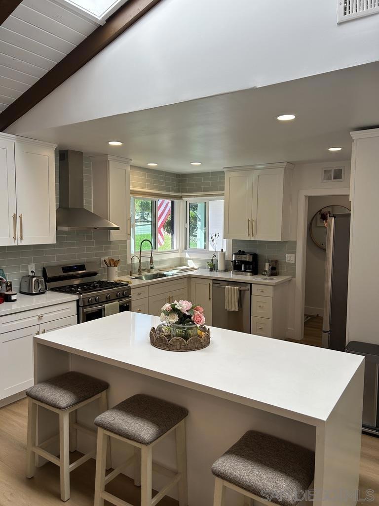 The American Dream—realized. This fully renovated traditional ranch-style residence sits on an expansive corner lot in a highly sought-after neighborhood with no HOA & no Mello-Roos, just minutes from La Costa, Bressi Ranch, Lake San Marcos, & within close proximity to La Costa Meadows Elementary, San Elijo Middle School, & San Marcos High School. Set on over a quarter acre (13,800 sq ft) of flat, usable land, the property features a generous front yard, substantial side yard, & a full-size pool and spa with ample room to further enhance the outdoor living space. Floor-to-ceiling glass doors create seamless indoor-outdoor flow, while vaulted wood-beamed ceilings and abundant natural light add warmth and architectural character. A versatile bonus room offers flexibility for today’s lifestyle needs. Rarely do homes of this scale, condition, and location become available in this tightly held North County community.
