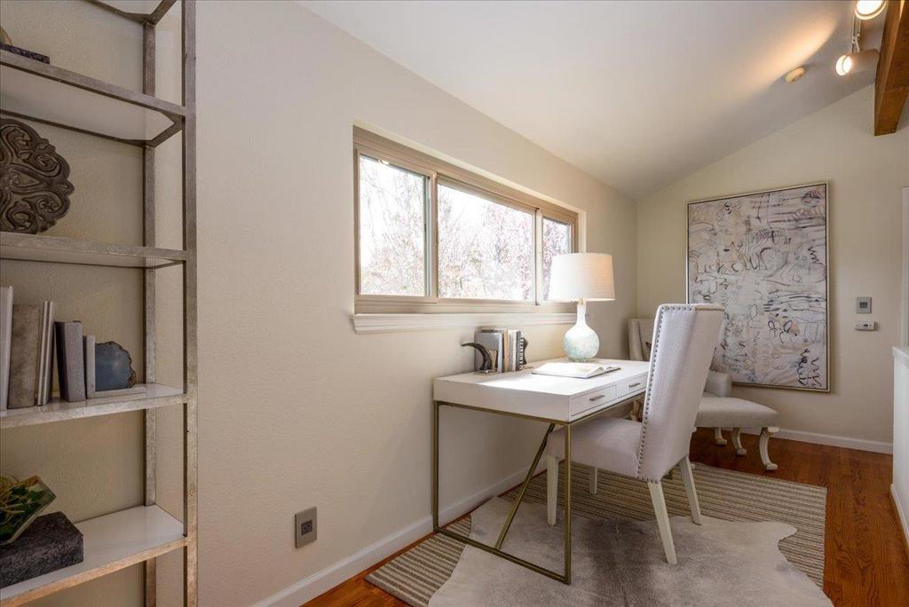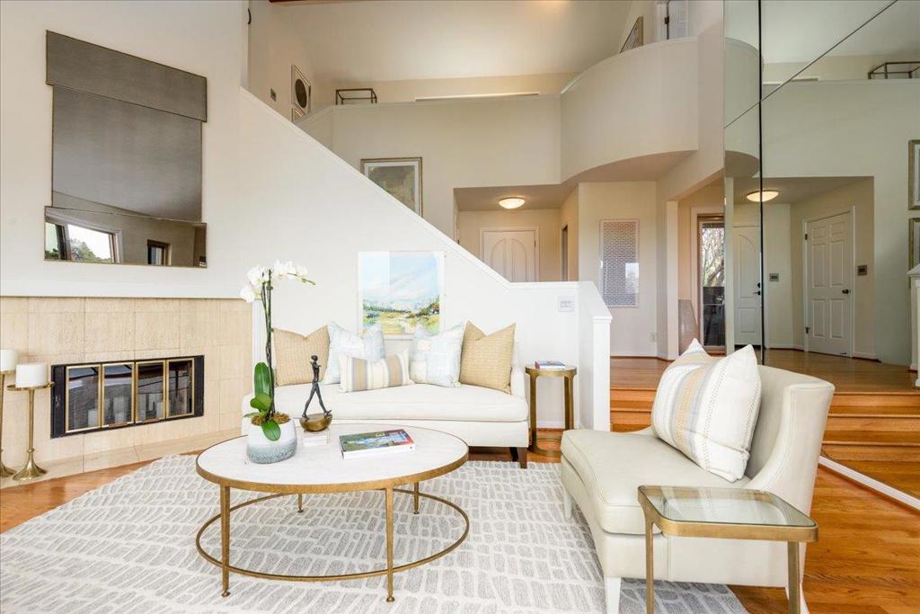 Perched in the hills of Belmont, this stunning multi-level home offers 3 bedrooms, 2.5 baths, a versatile loft, and jaw-dropping panoramic views of the San Francisco Bay, Bridges and SF Skyline. The open, light-filled design takes full advantage of its scenic setting. The living room wows with soaring ceilings, a cozy fireplace, and expansive windows framing the bay. A sleek kitchen with European cabinetry, granite counters, breakfast bar flows into a casual breakfast area and a formal dining room perfect for any occasion. The spacious family room invites relaxation, while the lower level features two bedrooms, a full bath with a luxurious jet tub, and convenient laundry and storage spaces. The top-level primary suite is a private retreat with a balcony, custom walk-in closet, and a spa-like bath adorned with Porcelanosa tiles and premium finishes. A loft space completes the upper floor, ideal for work or unwinding. Hardwood and wood floors, Italian light fixtures, and fresh paint inside and out add modern style throughout. Conveniently close to top-rated schools, parks, shopping, and commute routes, this home is a perfect blend of beauty and practicality. Don't miss it!