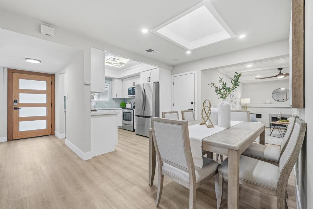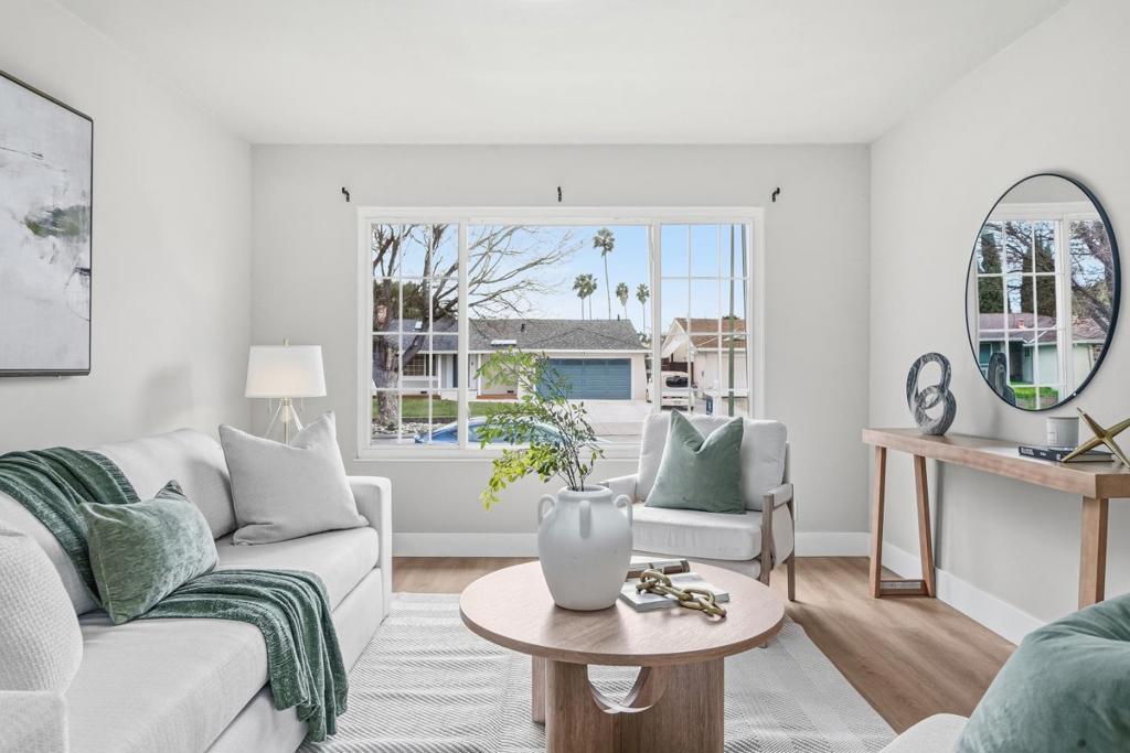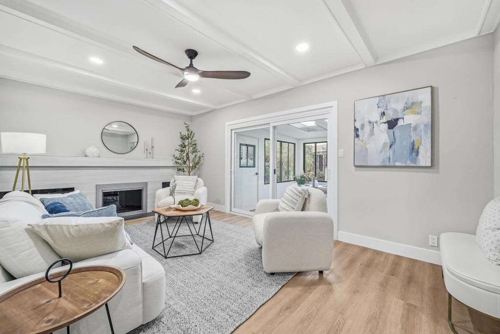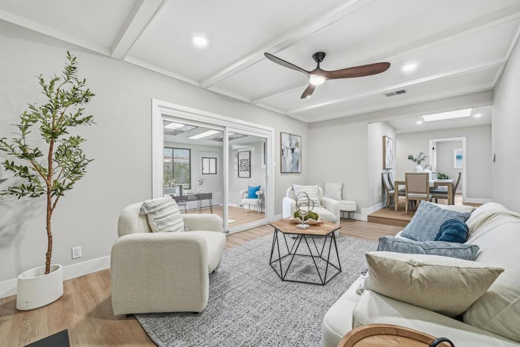 Welcome to this beautiful single-family home offering 4 bedrooms and 2 bathrooms 1480 sqft plus a 168sqft bonus sunroom in the sought-after Berryessa neighborhood, served by Piedmont Hills High School. The home welcomes you with an inviting living room featuring a large window and modern ceiling light. The gourmet kitchen showcases quartz countertops, stainless steel appliances, and white shaker cabinetry, and connects to a dining area with a skylight. The layout flows into a family room with a cozy fireplace and ceiling fan, with a sliding door opening to a bonus sunroom. Bedrooms are located along the hallway, including a primary suite facing the backyard with two closets and a modern en-suite bathroom featuring a double vanity sink, large mirror, and stall shower. Three additional bedrooms accommodate family and guests, and a modern hallway bathroom offers a stylish ceiling light and shower over the tub. Additional highlights include an attached two-car garage with washer and dryer. Conveniently located in North Valley, close to parks, grocery stores such as Costco, Safeway, and 99 Ranch, and shopping at Great Mall, with easy access to Highway 680 and Montague Expressway for a short commute to tech companies. Do not miss this great opportunity!