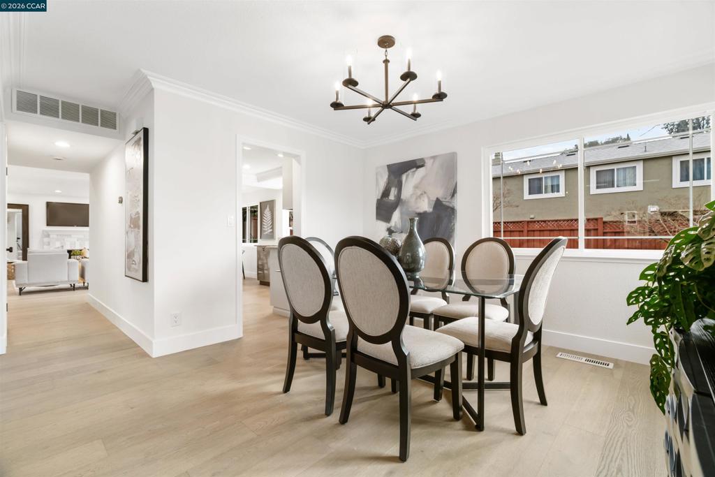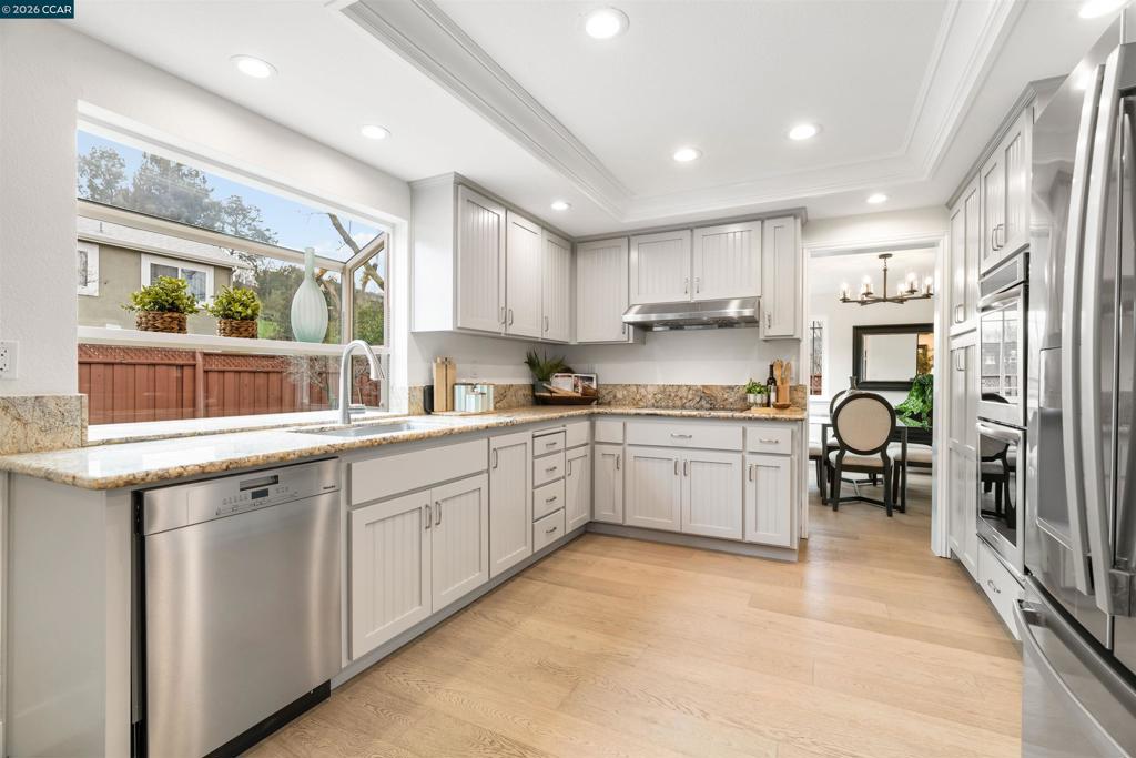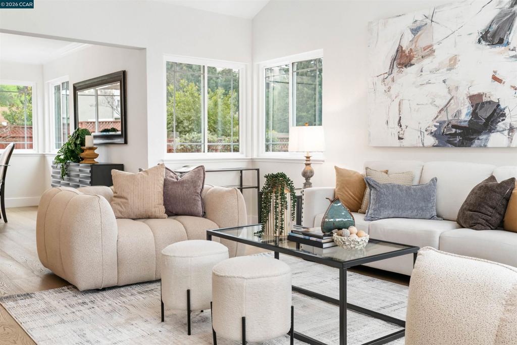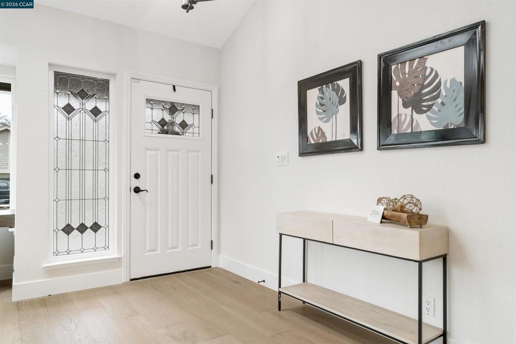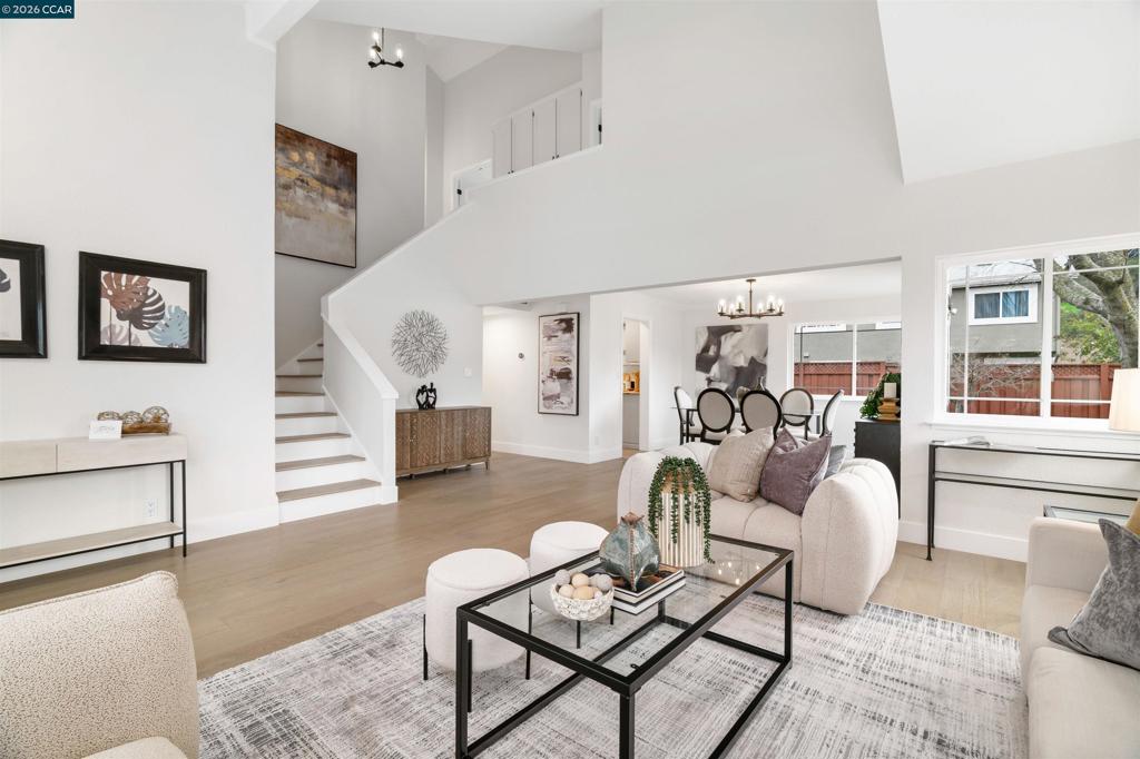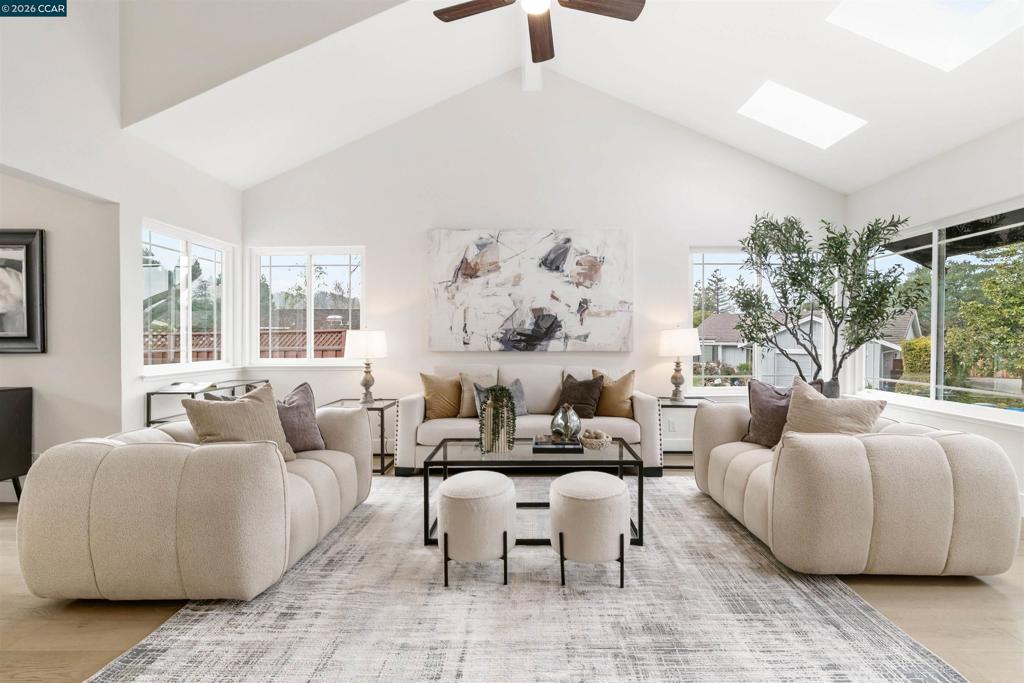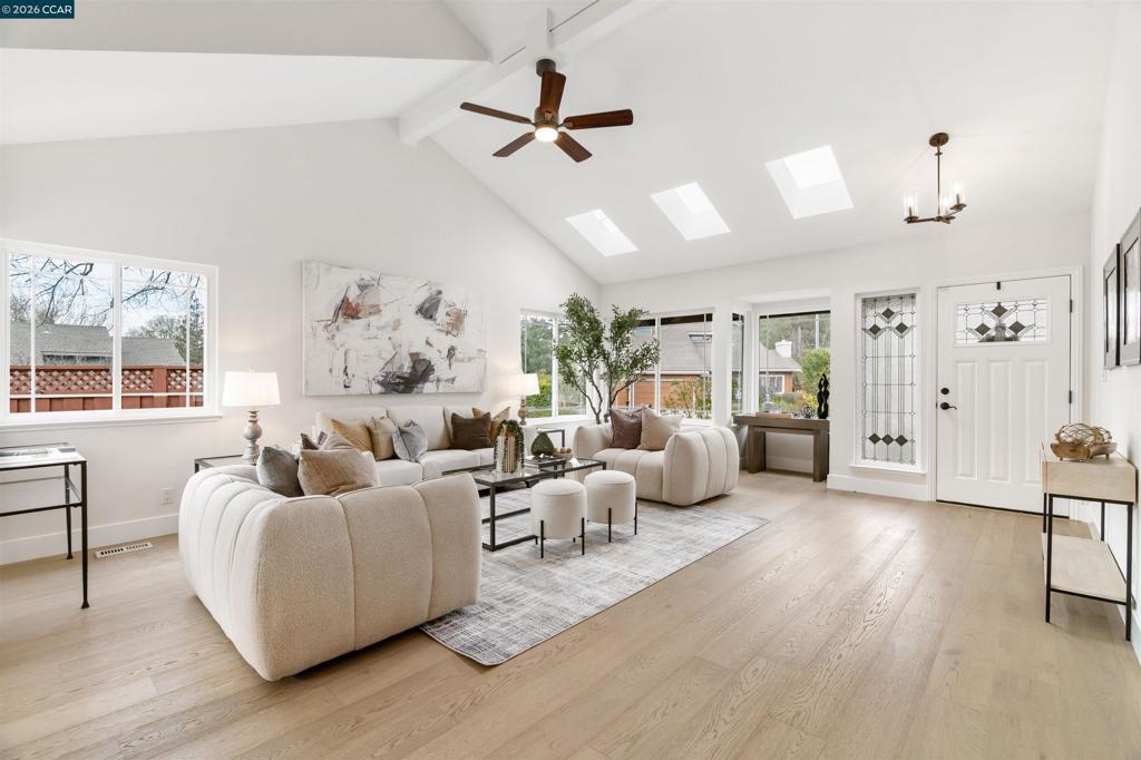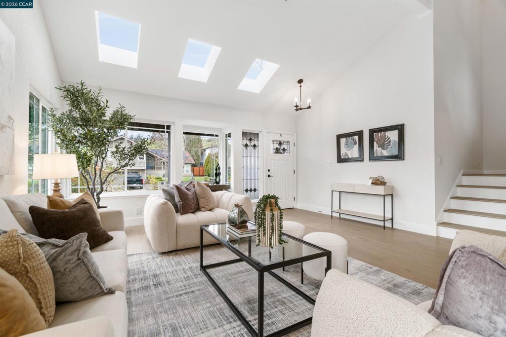 Timeless Architecture and Stunning Curb Appeal create a Grand First Impression! Enter the dramatic living room defined by soaring vaulted ceilings, skylights, & horizontal sliding dual-paned windows that flood the space w/natural light. The heart of the home is a beautifully refreshed kitchen featuring a large bay window, tray ceiling w/recessed lights, stainless appliances including a new cooktop & built-in double ovens. Enjoy mornings in the breakfast nook or host dinners in the adjacent dining area. The cozy family room, centered by a white-washed brick fireplace, flows seamlessly to the trellis-covered backyard deck—your front-row seat to stunning sunset views. A versatile 1st floor bedroom & bathroom offer the perfect setup. Upstairs, the large Primary Suite is a retreat w/vaulted ceilings, skylight, walk-in closet, & spa-like ensuite featuring a frameless glass shower & bench. Two additional bedrooms share a clever Jack-and-Jill bath. Modern touches include engineered flooring, crown molding, 5.5" baseboards & matte black hardware. 8000 sq ft lot & extra-large driveway. No detail has been spared in this "Hidden Gem"!