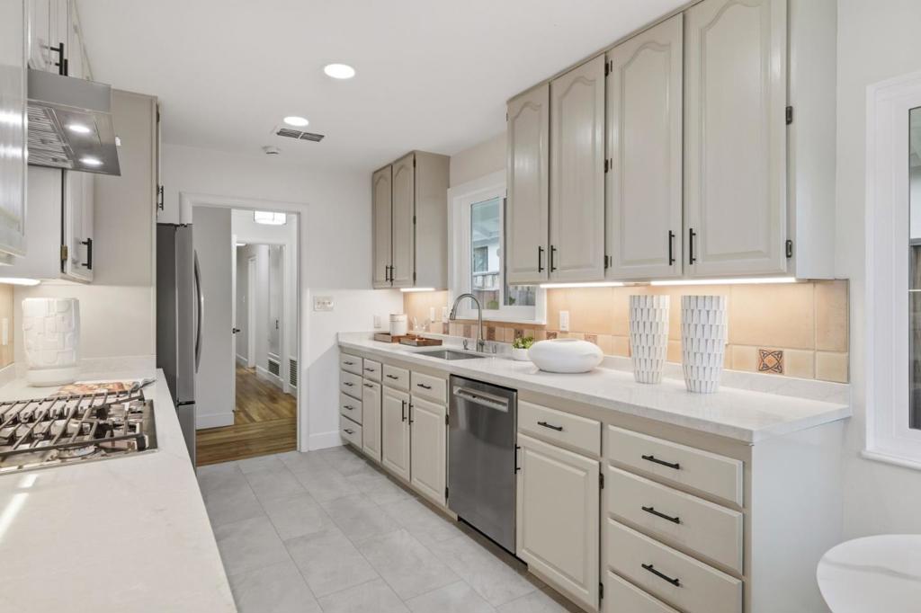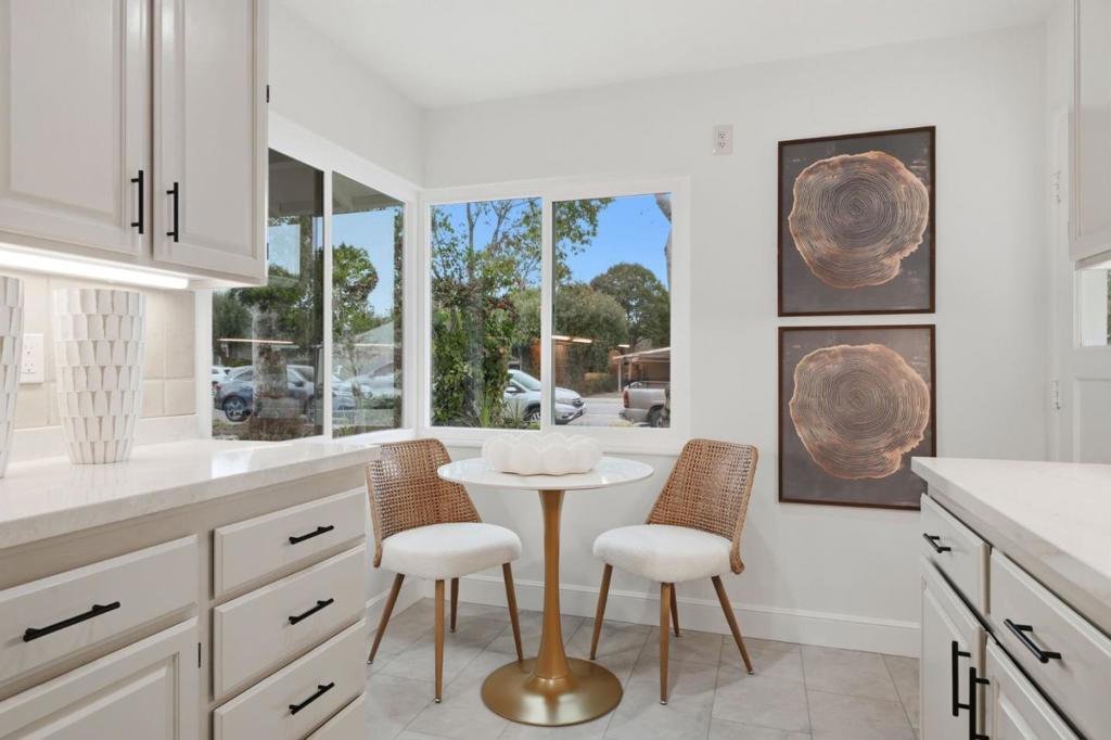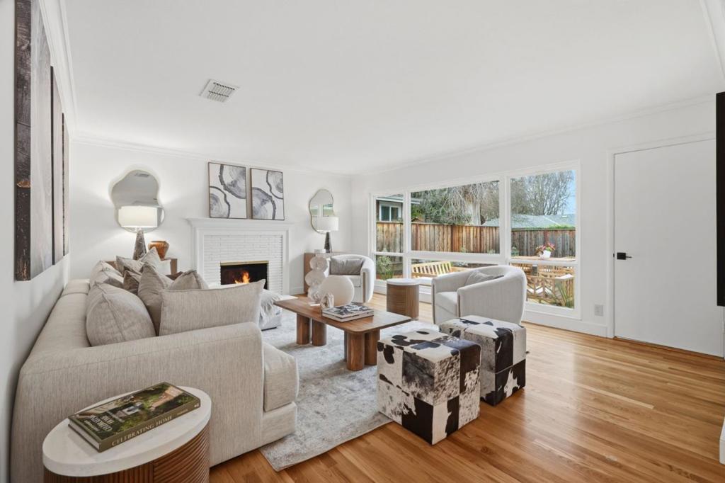 This light-filled Barrett & Hilp ranch-style home is ideally located in the highly sought-after Duveneck neighborhood. The lovely kitchen with breakfast nook has been thoughtfully updated with new quartz countertops, gas cooktop & vent hood, and stainless steel appliances. The bright living and dining room combination features a fireplace and a wall of windows overlooking the rear yard, with direct access to the patio for effortless indoor-outdoor living. The primary bedroom includes a newly remodeled bathroom and direct access to the rear patio. Recent improvements include new dual-pane windows, fresh interior and exterior paint, and refinished hardwood floors throughout. The newly landscaped grounds feature lush lawns and a spacious decomposed granite patio perfect for relaxing and al fresco dining. This home presents a wonderful opportunity in one of Silicon Valleys most desirable communities close to beloved parks & play grounds, cultural attractions, and top-rated Palo Alto schools.