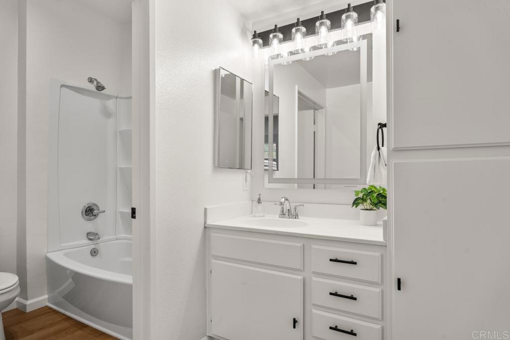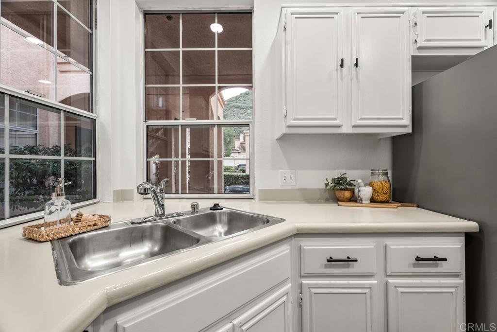 Desirable ground-level end-unit condo in the VA-approved Vista Del Lago community, an excellent opportunity for first-time buyers seeking value, comfort, and lifestyle. This spacious, beautifully renovated one-bedroom home features high ceilings, large windows, and abundant natural light, along with fresh interior paint, new flooring, and a new refrigerator. The open layout offers generous living areas, a large bedroom with direct access to a private patio, and a walk-in closet. The patio is ideal for relaxing, entertaining, or creating your own outdoor retreat, while the in-unit laundry and end-unit location provide added convenience, privacy, and fewer shared walls. Currently, the lowest-priced one-bedroom available in resort-style Vista Del Lago, the home combines space and affordability in a tranquil setting surrounded by mountain views. Residents enjoy extensive amenities including two pools and spas (one a heated lap pool), tennis and pickleball courts, a fitness center, billiards and recreation rooms, a clubhouse, scenic walking and biking trails, a duck pond, and beautifully maintained grounds. Morada residents also benefit from a private pool and spa and EV charging. Located within the highly regarded Poway Unified School District and just minutes from freeway access, shopping, dining, Lake Hodges trails, and the San Pasqual and Highland Valley wineries, this home offers an ideal blend of convenience, recreation, and everyday living.
