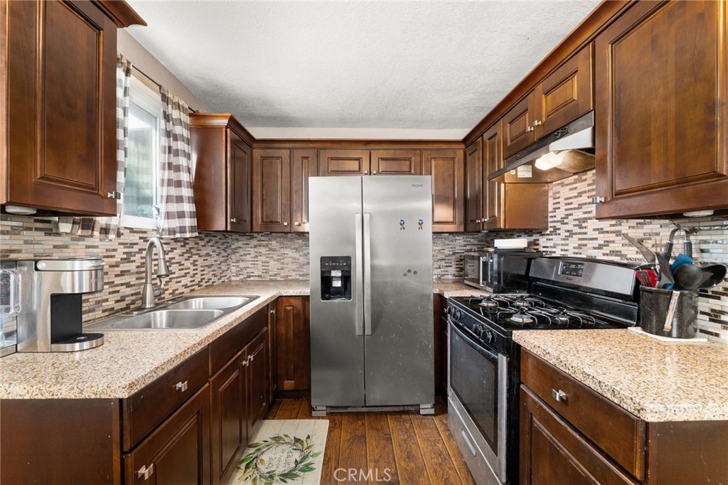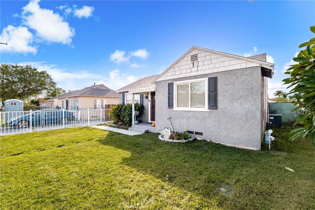 Centrally located in Fontana, this beautifully updated home is move-in ready and full of charm. The upgraded kitchen features granite countertops and modern cabinetry, complemented by newer flooring and dual pane windows throughout. Enjoy year-round comfort with new central heating and air. The inviting floor plan includes two spacious bedrooms and one stylishly updated bathroom. A generous living room flows seamlessly into the dining area and kitchen, creating an open, comfortable living space. Outside, the property offers a fully fenced front yard, a long driveway, and a detached garage. A covered patio with laundry adds convenience, while the expansive backyard provides endless possibilities—ideal for a pool, ADU, or personalized outdoor retreat.