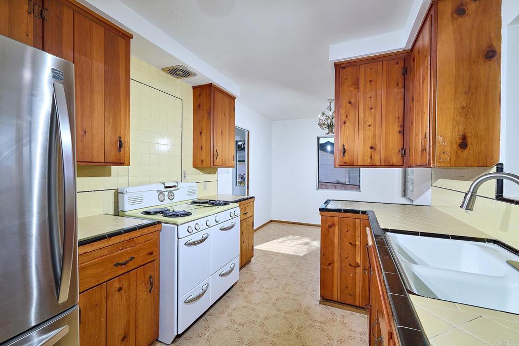 West of I-5 and only a few block to the beach, this charming 2-bedroom, 1-bath cottage offers 993 sq ft of cozy coastal living on an oversized lot. Full of character and in original condition, this home is the perfect opportunity to restore, renovate, or enjoy as-is. The roomy living room is open and airy with many windows to let the sunshine in. Sit in the breakfast nook and enjoy views to the backyard. The carpets were removed to find oak hardwood floors. The laundry room with washer and dryer is conveniently located inside the house. The spacious yard features mature fruit trees, including orange, apricot, persimmon, macadamia nut and avocado, and plenty of room for expansion, gardening, or outdoor entertaining. Equipped with solar for energy efficiency. Two car garage. Easy access to I-5 and Coast Highway. Close to Swami's, Seaside Market, Moonlight State Beach, Stonesteps, Encinitas Community Park, Scripps Hospital, great shopping and many restaurants. Encinitas is a premier Southern California coastal city renowned for its world-class surf spots (like Swami’s and Cardiff Reef), pristine beaches, and laid-back, vintage beach town culture. Located on Historic Highway 101, it is famous for the Self-Realization Fellowship Meditation Gardens, San Diego Botanic Garden, and a vibrant, walkable downtown. Home is being sold as-is. This is your rare chance to own a beachside retreat with endless potential!