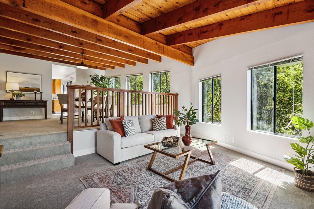 3 bedroom 3 bath house & an office with private deck and San Francisco Bay views. The office situated upstairs for the most amount of privacy with its own private deck makes for the best of home office working. Uniquely situated property for the utmost in privacy with San Francisco Bay and water views. Nature surrounds you while simultaneously being minutes from urban living. Walk down to Shepherd Canyon Park and take in fresh air, a beautiful tree lined canyon, and the occasional neighborhood soccer game. The home is nicely updated inside and out with all new horizontal siding, fresh paint inside and out, new appliances, custom slab counter tops in the kitchen, new carpets, along with new plants on an automatic irrigation system. Serenity along with close urban living can all be yours in this recently updated Montclair home.