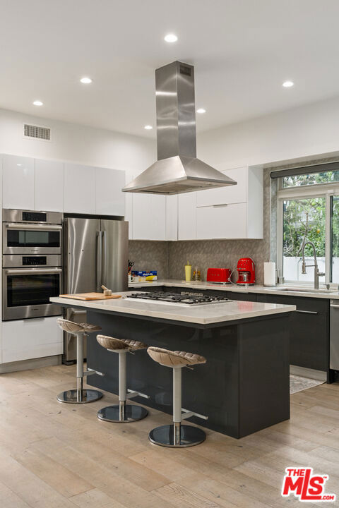 Bold, architectural, and beautifully livable, this modern 5-bedroom, 4-bath Culver City stunner delivers the kind of space, style, and flexibility that's hard to find. Clean lines, striking design details, and walls of glass set a dramatic tone from the moment you arrive, while the open-concept layout keeps everything feeling connected, bright, and effortless for everyday life and entertaining. At the heart of the home, a sleek chef's kitchen with an oversized island anchors the main living space, flowing seamlessly into the dining and lounge areas so you can cook, host, and hang out without missing a beat. The floor plan is as functional as it is inviting: three bedrooms upstairs and two downstairs strike the perfect balance of togetherness and privacy, ideal for families, guests, a home office, or multigenerational living. Slide open the doors and step into a large, hardscape backyard designed for low-maintenance fun, weekend BBQs, and easy outdoor play. And when it's time to take things up a notch, head to the massive rooftop deck, a showstopper space made for sunset cocktails, movie nights under the stars, and unforgettable gatherings. A 2-car garage plus a long driveway with room for at least three additional cars makes coming and going simple, whether it's school drop-offs, playdates, or hosting friends. All of this comes with access to the highly regarded Culver City Unified School District and Culver City services, putting you in the center of it all while still feeling like you've found your own private retreat.