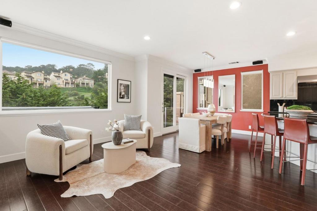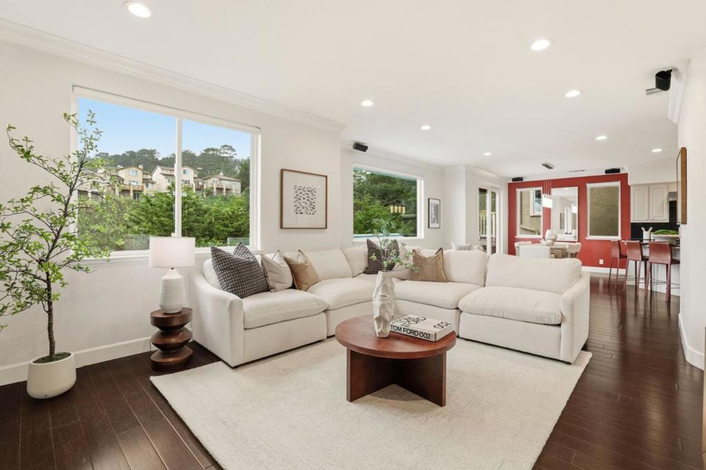 Perched above the coastline in Pacificas coveted Skyridge enclave & offered for the first time since its original construction, 868 Skyridge is a rare offering of exceptional scale, privacy & sweeping ocean-view living. Spanning over 3000 sq ft, this expansive residence is thoughtfully designed with multiple entertaining spaces & private suites. Dramatic interiors unfold with timeless style: rich hardwood floors, soaring living spaces & walls of glass that frame breathtaking canyon & sunset vistas. The heart of the home is anchored by a chefs kitchen with large island, top-of-the-line appliances & seamless flow into open dining & gathering areas. A custom pantry & a dedicated laundry room offer beautifully designed, aesthetic storage solutions. The primary suite is a sanctuary of its own, complete with spa-like bath elements including walk in closet. Step outside to the showpiece: a newly rebuilt deck with a private hot tub where you can soak in both the warmth and the horizon. No shortage of storage, with a 2-car garage and a spacious downstairs storage. Set on a quiet street just minutes from Milagra Ridge trails, Linda Mar Beach, and Pacificas top schools, with effortless access to HWY 1, 280 & Silicon Valley beyond- this is coastal luxury living at its most inspiring.