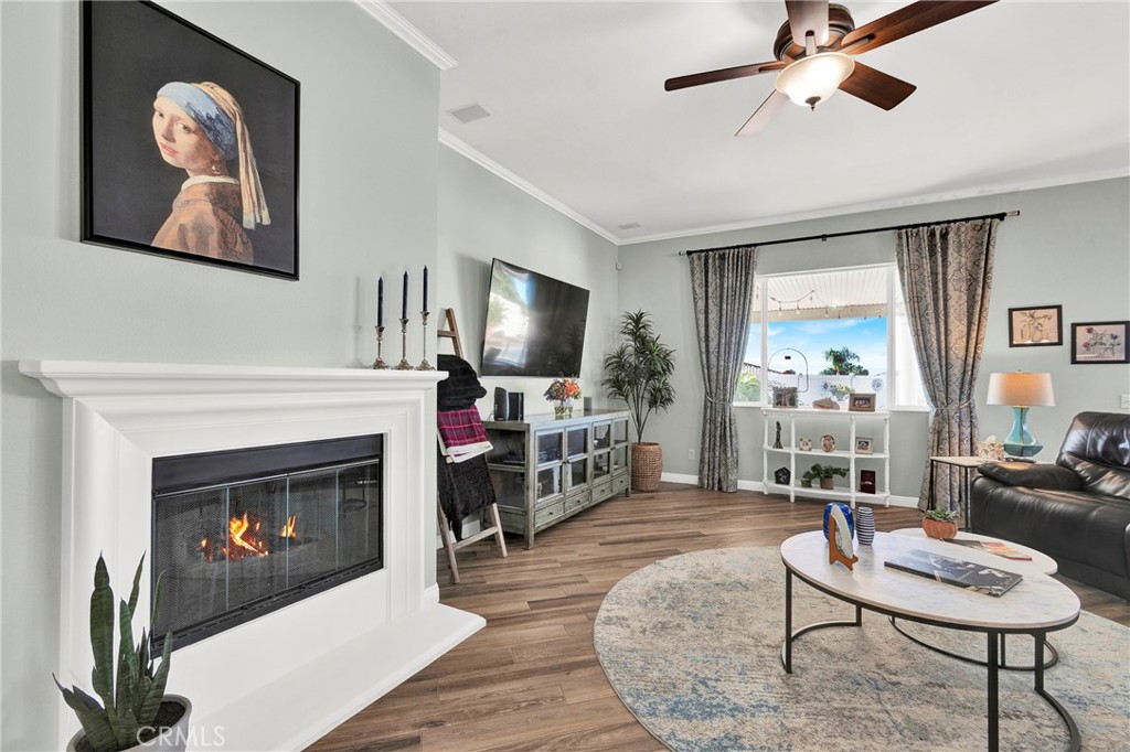 POOL & SPA HOME, on Beautiful Lot at the end of a Quiet Cul-D-Sac, this is a REMARKABLE Enlarged 'EMERALD' Model (3 BA - TWO Primary 'En Suite' Bedrooms with Walk-in Closets + Den/Office - 2305 sf) in Solera at Oak Valley Greens, a 55+ Luxury Active Adult community. ALL UPSCALE FURNISHINGS, including EVERYTHING (Dishware, Decor Items, etc) INCLUDED IN PRICE, if desired. Some Features include: Expanded/remodeled Great room; Remodeled Kitchen & Baths; Pricey Porcelain/Wood-Look Flooring, Plantation Shutters, Ceiling Fans and Specialty Light Fixtures. CLASS & PANACHE - This Home won't Disappoint. Garage is Spacious Double Car with 3rd Parking for Golf Cart, Motorcycle, Storage, Etc. Yard has a Salt Water Pool & Jacuzzi, Extended Alumawood Patio Cover to Enjoy outdoor living in ALL Seasons, BBQ island & Lush grounds with Avocado and Citrus Trees. SPECIAL FEATURE is a 30 amp RV outlet and RV Dump system. Solar is leased at $115/Mo for unbelievably low Utilities. Solera at Oak Valley Greens offers a Great Clubhouse; Many Social Clubs and Activities to meet New Friends; Indoor Jogging track, Fitness center, Tennis courts, Pool/spa, Library; Bocce Ball and Billiards. The Solera 55+ Community has a Picturesque Mountain Backdrop, and is Freeway Close (I-10) - A Short distance to fabulous Shopping (Cabazon or Palm Springs); Casinos; Golf at Oak Valley Greens; Medical Facilities Close by & a short drive to the Charming City of Redlands to the west or Palm Springs to the East. If you're looking for an UPSCALE 55+ Community, you won't want to miss the Ideally Located Community of SOLERA at Oak Valley Greens.