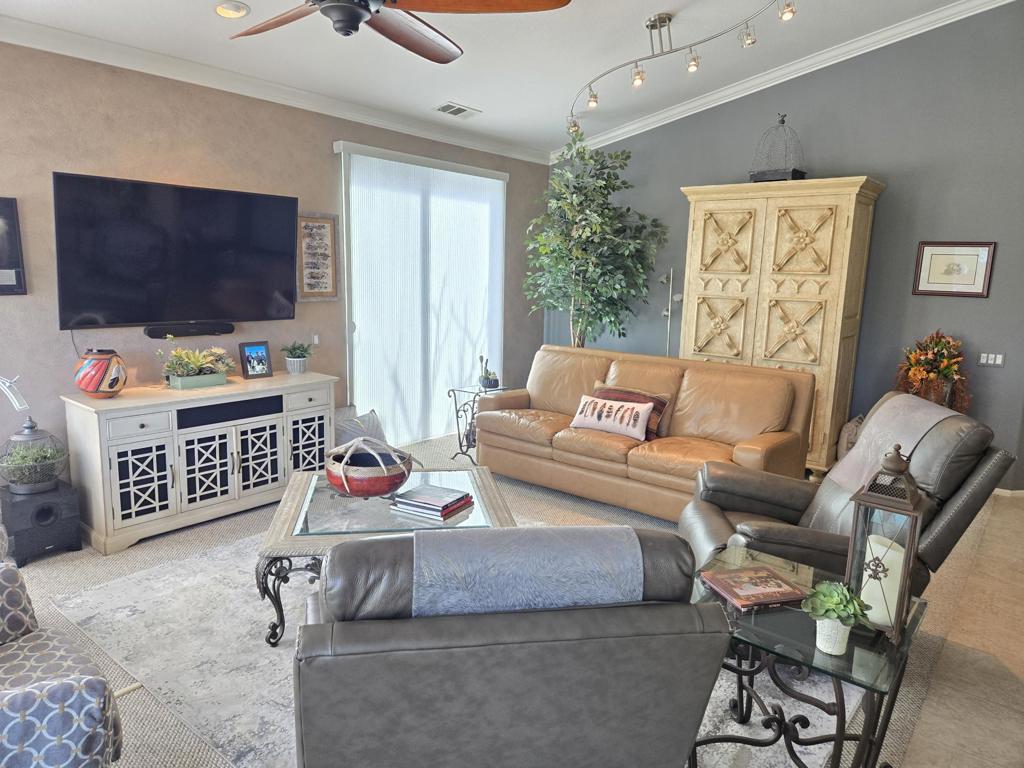 SPECTACULAR POOL/SPA VILLA WITH WIDE-OPEN VIEWS. Highly sought after ST. ANDREWS MODEL completely renovated. Beautiful spot for relaxing on your patio, in the pool or spa, after a day of golf or exploring. This 3 bedroom and 2.5 bath villa has an open family room kitchen with beautiful granite tile countertops, painted cabinets and center island. Three sided fire place divides the family room and living room. This home has crown molding and extensive use of tile floors. Carpet in bedrooms. Fabulous golf course views! Monthly Ground Rent is $139.62 - Land lease thru 2069. HOA DUES INCLUDE: 2 DVR or HD Cable boxes and service, High Speed Internet, grounds maintained to your door by HOA ground maintenance crew, outside pest control when requested, outside water, (you pay only for inside water). Gated community with 24 hour guard gate access, membership to Health and Fitness Center, Tennis, Bocce Ball, Pickleball. Discounts and preferred tee-times for owners at the Desert Princess 27-hole PGA Championship golf course, no initiation fees, rated among the best in the valley by GOLF DIGEST. This quiet community is away from the noise yet minutes from everything that is in Palm Springs; restaurants, shopping, casinos, an international airport, the Tramway, Art Museum, Theaters, and the Street Fair.