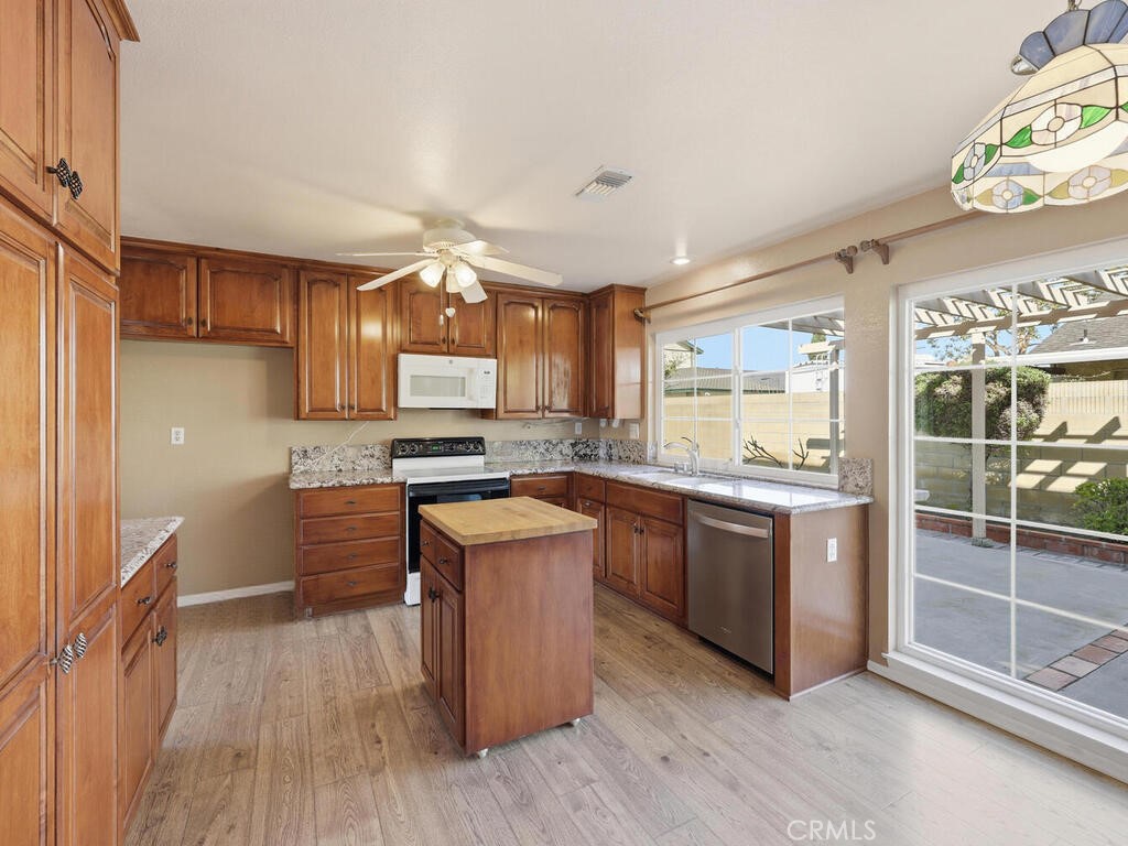 Luxury Ponderosa Home in Prime Cerritos Cul-de-Sac. Nestled at the end of a quiet cul-de-sac, this beautifully maintained Ponderosa-built residence offers approximately 2,389 sq. ft. of refined living space with 4 bedrooms, 3 bathrooms, and a spacious 350+ sq. ft. bonus room. Situated on an oversized pie-shaped lot with rare RV access, this home offers exceptional space, privacy, and potential. Inside, soaring ceilings and abundant natural light enhance the formal living and dining areas, while the upgraded kitchen features granite countertops, a gas range, and a full pantry. The kitchen opens to a welcoming family room with a fireplace and views of the covered patio—perfect for indoor-outdoor entertaining. A downstairs bedroom and ¾ bath provide ideal flexibility for guests or a private office. Upstairs includes a generous primary suite with a dressing area, dual wardrobes, and a recently remodeled bath, along with additional bedrooms and a remodeled hall bathroom. Additional highlights include dual-pane windows, a newer A/C and heating system, and a north-facing backyard. The oversized lot offers room for a pool, RV/boat storage, or a potential ADU (buyer to verify). Located near shopping, dining, and freeway access within the highly acclaimed ABC Unified School District—walking distance to Whitney High Magnet School (requires testing to attend) and Cerritos Park East—this exceptional home is a rare offering.