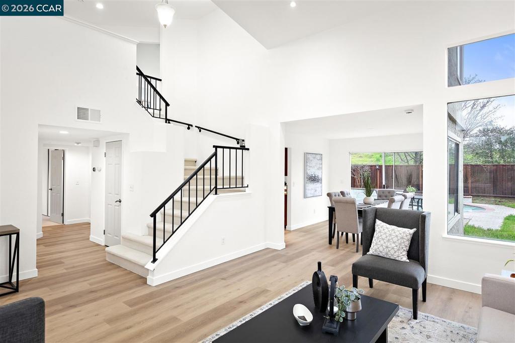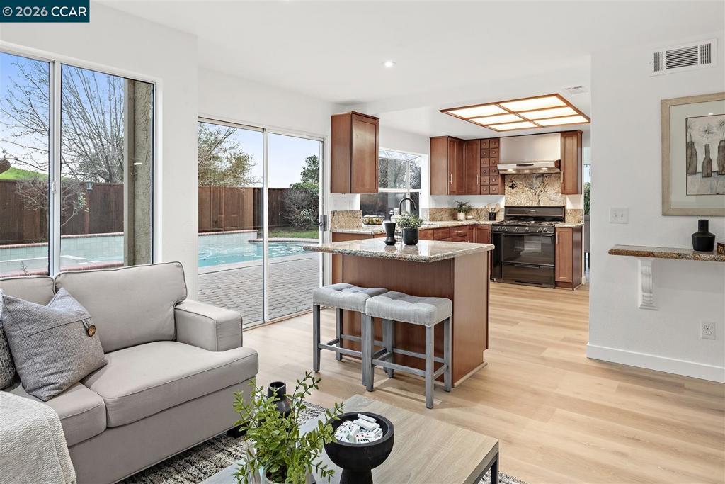 STUNNING Home with a POOL in Antioch's Canada Hills neighborhood! This beauty features rich laminate floors, double pane windows, fresh interior paint, updated fixtures, and more! Marvel at the abundance of charm upon entering. Kitchen flows seamlessly with Living room and offers outside access. Living room features a cozy fireplace, perfect for those cooler months! Kitchen boasts shaker cabinets, granite counter tops, a pantry and more! ONE full bedroom and bathroom conveniently located downstairs, perfect for guests. Venture upstairs where a sitting/office area leads to 2 bedrooms joined by a Jack and Jill bathroom! Don't forget the primary bathroom with tiled floors, a walk-in closet, equipped with both a shower and tub overlooking the hillside! Additional perks include a 3 car garage, plenty of yard space, and no rear neighbors! This gem is truly a MUST-SEE and will go fast! Come take a look today!