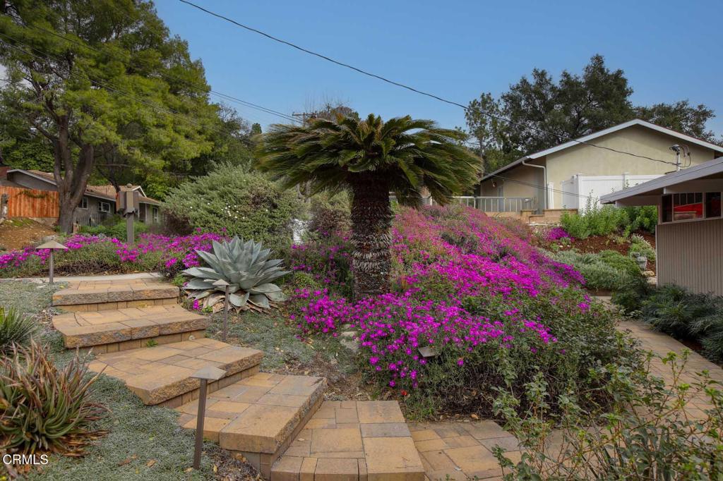 First time on the market in 17 years! This expanded Webster Wiley architect-designed property with courtyard entrance and exposed beams throughout is located at the end of a quiet cul-de-sac in Briggs Terrace, offering 4 bedrooms, a bonus room, and 3 bathrooms. Residents enjoy the benefits of a natural setting while remaining only minutes from local amenities and major freeways. This well-maintained residence has been thoughtfully updated over the years, including the kitchen, primary bedroom, all bathrooms, windows, pool resurfacing and coping, fencing, front and rear landscaping, paving stone driveway and pool decking, and upstairs ductless HVAC units. The kitchen features a breakfast bar plus stainless-steel appliances, including a Fisher & Paykel refrigerator and a 6-burner gas cooktop with double oven. It is centrally located between the dining room, with a cozy fireplace, and the spacious living room. All three rooms overlook the backyard, which includes a refreshing pool, a large deck for relaxing, and a covered patio--perfect for indoor/outdoor entertaining and dining alfresco. There are 3 bedrooms downstairs, 2 sharing a bathroom, and the third has a private bathroom and a walk-in closet. Upstairs, you'll find the primary bedroom and bathroom, a walk-in closet, and a relaxing balcony with mountain views. Additionally, there is a 200 sq ft bonus room with vaulted ceilings, suitable as a family room, home office, or gym. The low-maintenance yard features synthetic grass, multiple fruit trees, including lemon, lime, tangerine, fig, and kumquat, plus a practice golf hitting area. Adding the award-winning schools, this is a truly wonderful home in a great location, not to be missed!