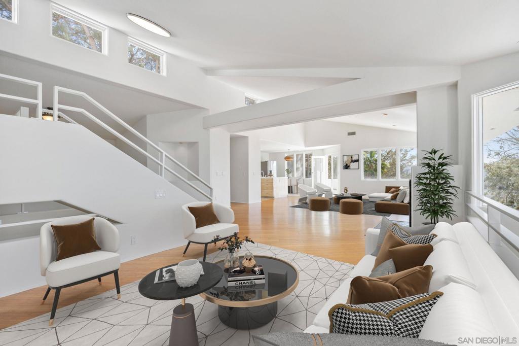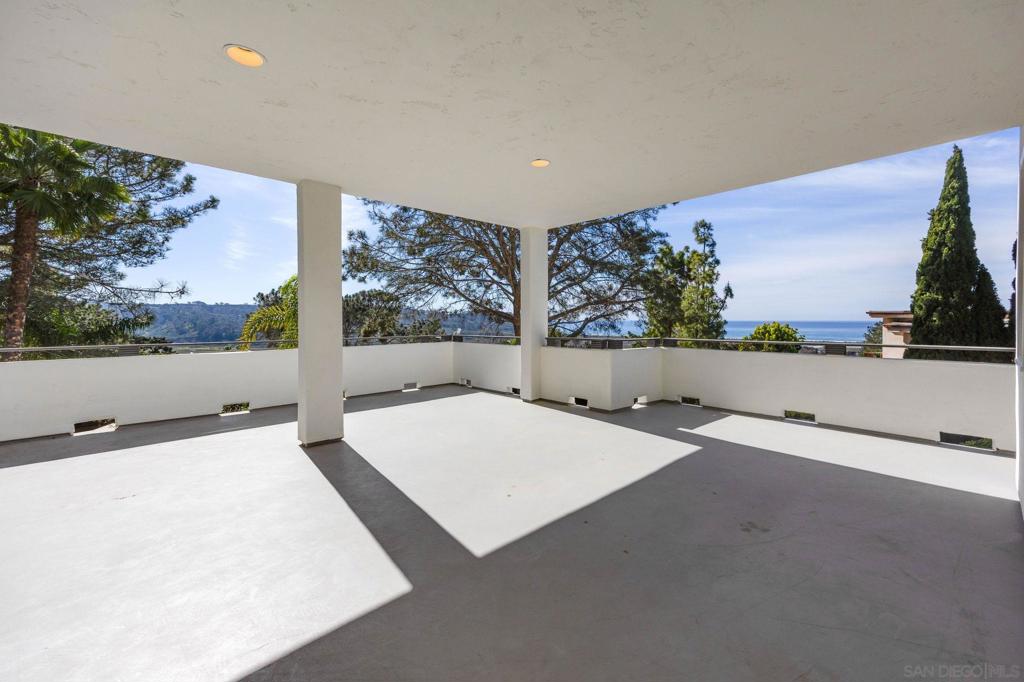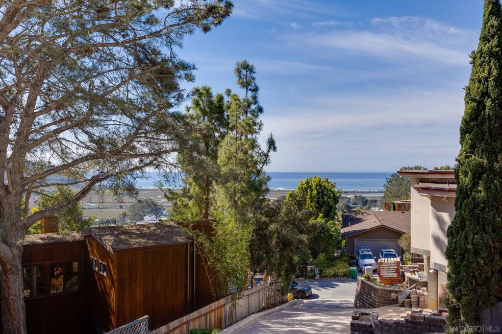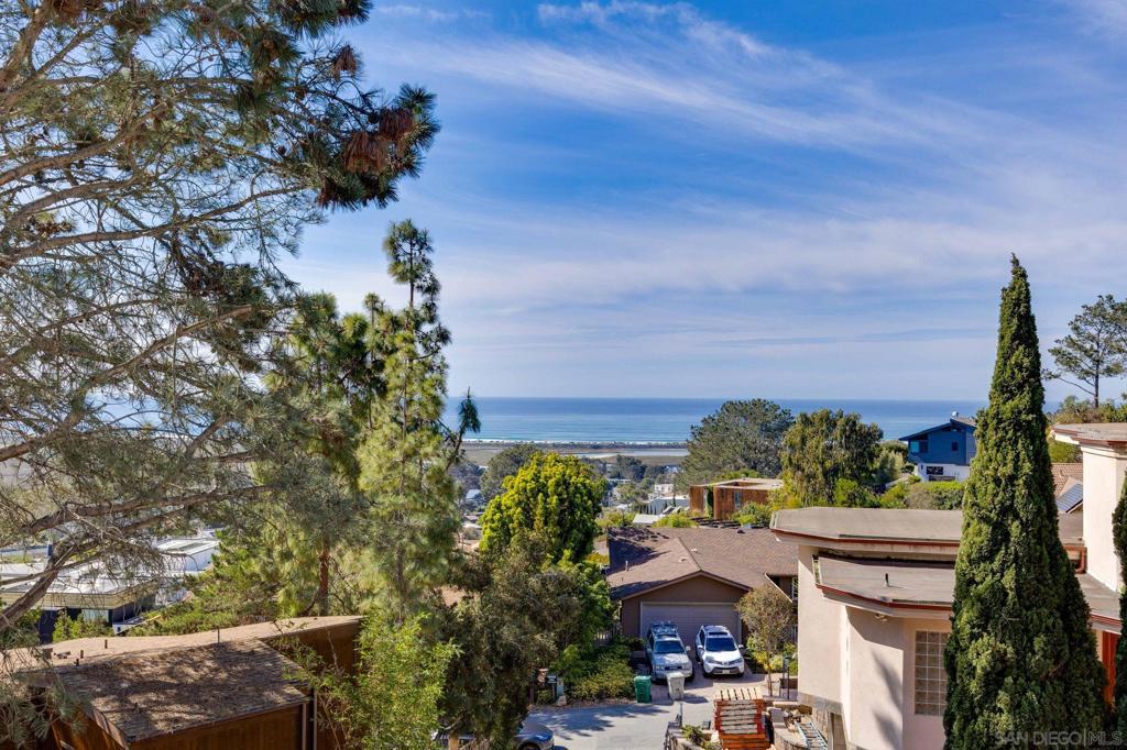 Tucked privately among rare Torrey Pine trees, this coastal home offers breathtaking sit-down white-water ocean views with sweeping panoramas of the Pacific Ocean and Los Peñasquitos Lagoon from nearly every room! You'll find multiple spacious decks covering over 1,200sq.ft. and 350 of that is covered) —including a private 180-degree view deck—designed for effortless indoor-outdoor living and unforgettable sunsets. The entry level features three guest bedrooms, while the upper level showcases an open-concept living area with soaring cathedral ceilings and bamboo/hardwood flooring. The top floor is dedicated to a spacious primary suite with an ensuite bath, walk-in closet, and private deck. Enjoy a rare “best of both worlds” setting with ocean and lagoon views to the west and a serene nature reserve behind the home that will never be developed and allows for ultimate privacy. Walkability that you can't typically find with views like this, you are minutes to Torrey Pines State Beach and multiple restaurants and coffee shops and just two miles from the Del Mar Racetrack and Fairgrounds.