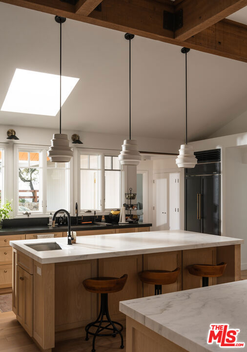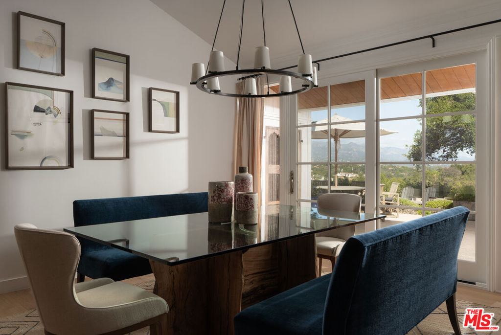 Reimagined in 2023, this contemporary ranch estate captures Hope Ranch living on 2.51 acres with panoramic mountain & city views. Privately set at the end of a quiet cul-de-sac behind an electric gate, the 4,136 sq ft residence offers five bedrooms, four full bathrooms, & a gourmet kitchen outfitted with Wolf & Sub-Zero appliances. Hardwood, tile, & slate floors ground the home in warmth, while skylights & dual-pane windows frame the mesmerizing vistas beyond. Outdoor living shines with a pool, spa, multiple terraces, al fresco dining, an outdoor kitchen & BBQ, fire pit, a water feature, & fruit trees surrounded by mature landscaping. Additional features include forced air heating, a filtered tap water system, and a two-car garage. Award-winning schools and Hope Ranch amenities complete this remarkable offering with miles of equine trails, private beach access, and tennis courts. Downtown Santa Barbara's acclaimed dining and culture lie moments away, yet this secluded sanctuary feels worlds apart.