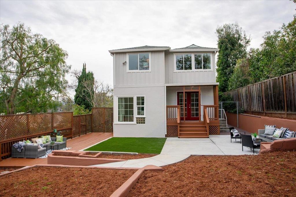 Serenity meets versatility in this beautifully remodeled two-story retreat in desirable Lower Emerald Hills. Set on a large, scenic lot with sweeping Peninsula views, this 2,455 sq. ft. home offers tranquility just minutes from downtown Redwood City and major commuter routes. A tiled foyer with generous storage welcomes you into a formal living room with a wood-burning fireplace and French doors to a sunlit deck. The bright dining room features large windows, stylish tile, and glass block accents. The remodeled kitchen shines with natural stone counters, white soft-close cabinetry, farmhouse sink, stainless steel appliances, and French doors to a spacious private backyard. A half bath and laundry room sit nearby. Upstairs are three spacious bedrooms and a full bath with double vanity. A private-entry artists studio with kitchenette and full bath adds exceptional flexibility.