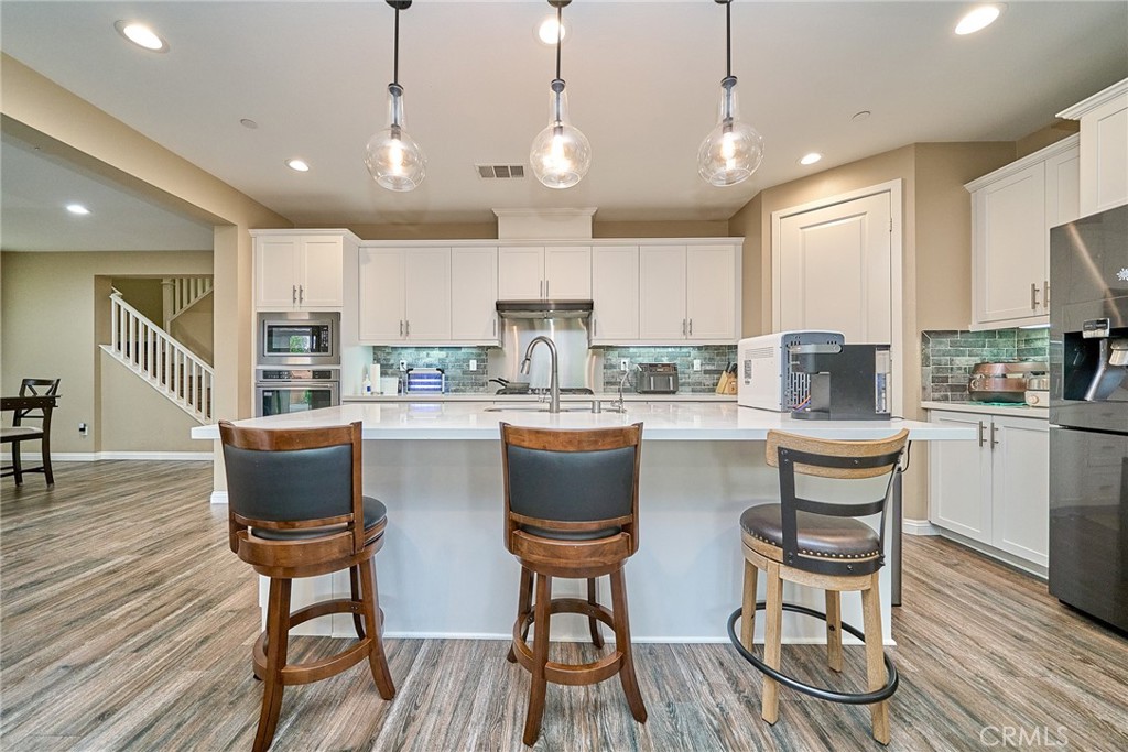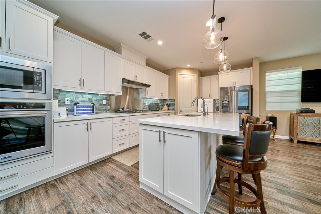 Beautiful two-story home in the heart of Buena Park offering timeless finishes and thoughtful upgrades throughout. Rich hardwood floors and recessed lighting set a warm, modern tone across the open main level. The chef-inspired kitchen features custom cabinetry, a large center island, stainless steel appliances, and abundant storage — seamlessly flowing to the adjacent family/dining area and out to a serene, spacious backyard perfect for entertaining. Upstairs includes a versatile den plus a generous primary suite with a private bath. The center bathroom is appointed with a separate shower and dual vanity. Practical comforts include a dedicated laundry room and an attached 2-car garage. Situated in a desirable location with easy access to local amenities — move in and enjoy the best of Buena Park living today.