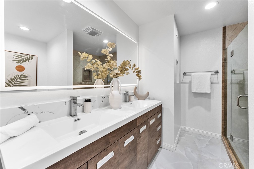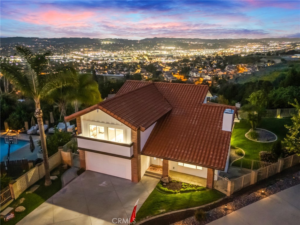 Welcome to 20573 Missionary Ridge in Walnut—a spacious 4-bedroom, 3 full-bath home offering approx. 2,426 sq ft on an approx. 8,420 sq ft lot, tucked away on a quiet cul-de-sac with VIEW, VIEW, VIEW. Enjoy panoramic city and mountain views from multiple rooms and angles, plus breathtaking sunset skies. Inside, the bright open layout features fresh interior paint, wide-plank flooring, and recessed lighting. The main living area showcases soaring vaulted ceilings and a modern fireplace, while a separate family room opens to the kitchen for easy everyday living and entertaining. The upgraded kitchen offers white shaker cabinetry, quartz-style countertops, mosaic tile backsplash, stainless steel appliances, a skylight, and generous storage. A downstairs bedroom and full bath provides ideal flexibility for guests, extended family, or a home office. Additional highlights include ample storage under the stairs and an attached 2-car garage with a water softener system. Upstairs, a contemporary landing with glass railing adds architectural flair. The primary suite is a peaceful retreat with double closets (including a walk-in) and an updated en-suite bath with dual sinks and a walk-in shower with seating. Secondary bedrooms also enjoy the views, plus a beautifully updated hall bath. Outside, enjoy an entertainer’s backyard with a pergola-covered view patio, raised brick terrace, extensive hardscape, and a spacious lawn—perfect for gatherings and relaxing. Minutes to shops and restaurants, with easy access to the 60 & 57 freeways and a direct route to Orange County via Brea Canyon Rd, plus highly regarded schools—this is a rare opportunity to own a quiet view home in one of Walnut’s most desirable neighborhoods.