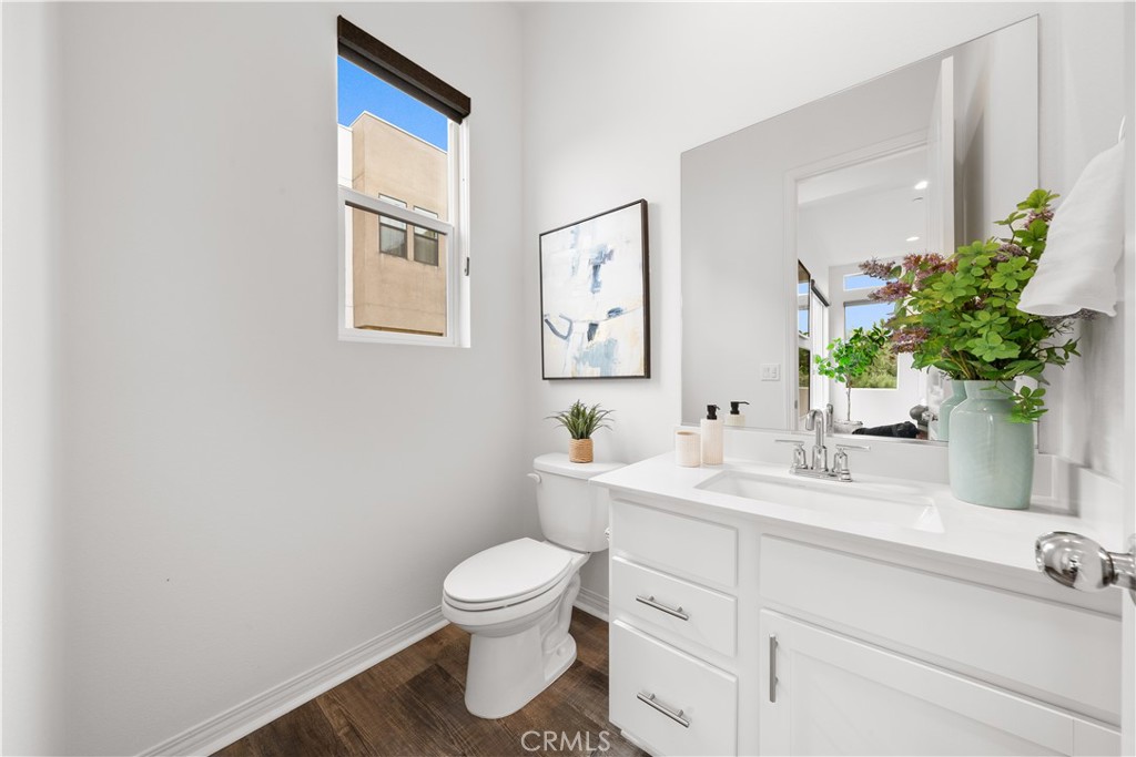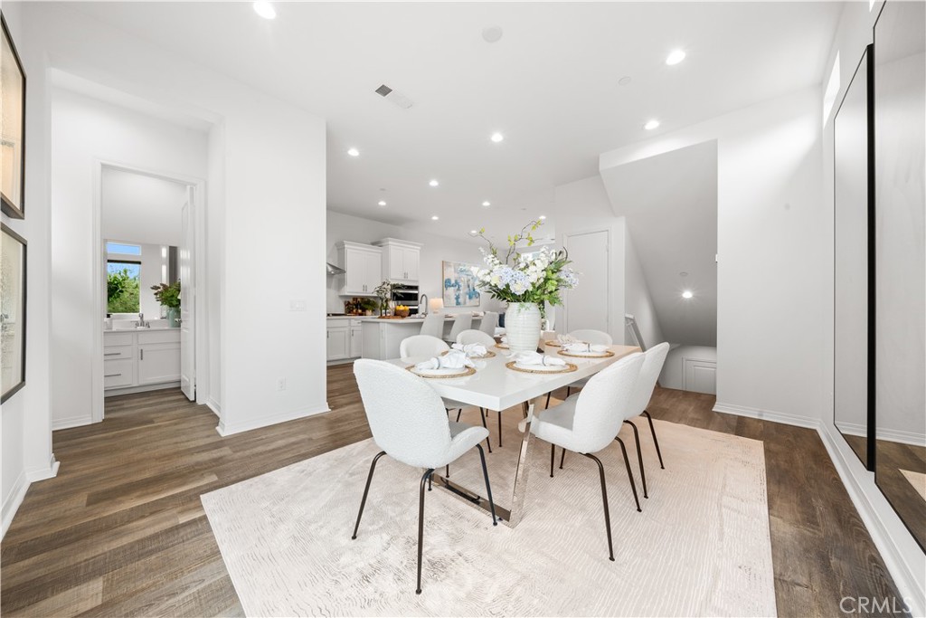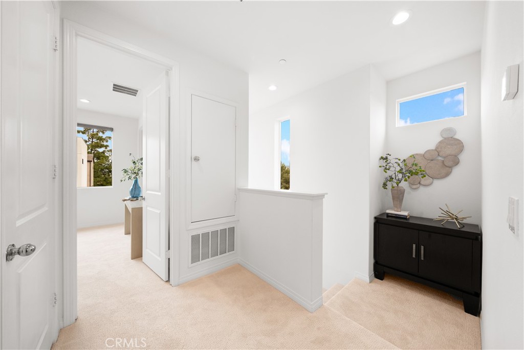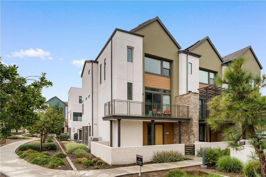 Located in the highly desirable Great Park community, this modern corner-unit residence offers abundant natural light, mountain views, and exceptional walkability. Ideally situated within a short walk to both Portola High School and Solis Park K-8 School, the location is one of the home’s most compelling features. The first level features direct-access garage space and entry access to the home. The second level serves as the main living area, showcasing a bright open floor plan with high ceilings and expansive windows that capture beautiful sunset skies and mountain views. The living and dining areas flow seamlessly into the contemporary kitchen, highlighted by a generously sized center island with ample prep space and storage—ideal for accommodating multiple appliances and everyday cooking. Clean modern finishes throughout enhance the home’s inviting atmosphere. Hunter Douglas motorized window treatments with blackout layers add both convenience and comfort. The third level includes two spacious bedroom suites, each with its own en-suite bathroom and walk-in closet, offering both privacy and functionality. A conveniently located laundry area completes the upper floor. As a desirable corner unit, the home benefits from additional windows, enhanced privacy, and excellent natural light throughout the day. The professionally designed front yard includes an irrigation system and solar lighting, creating an attractive and low-maintenance outdoor setting. Equipped with solar panels for improved energy efficiency, residents also enjoy access to Great Park’s extensive amenities, including parks, Olympic-size pools, trails, and community facilities, providing a vibrant and convenient lifestyle in one of Irvine’s most sought-after neighborhoods.