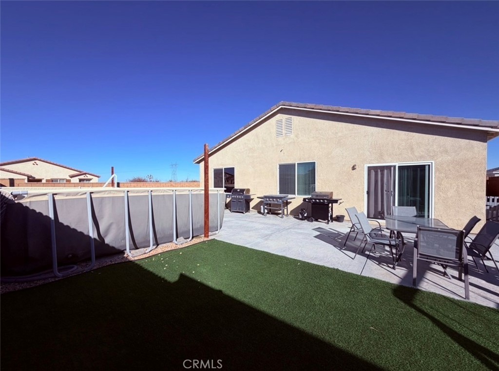 Welcome to this beautifully upgraded home located in the desirable North Adelanto area of Adelanto! This spacious 3-bedroom, 2-bathroom residence offers comfort, style, and versatility for today’s modern lifestyle. Step inside to discover generously sized rooms throughout, including a private primary suite featuring its own bathroom and a large walk-in closet. The home also boasts a versatile bonus room—perfect for a family room, home office, or even a potential 4th bedroom. The upgraded kitchen is a true highlight, featuring elegant granite countertops, stainless steel appliances, and not one, but two pantries with custom glass doors for added style and storage. Enjoy the seamless flow of large tile flooring throughout the home, complemented by ceiling fans in every room for year-round comfort. Relax and entertain in the inviting living area, complete with a custom-built TV/entertainment wall and an electronic ambiance fireplace—perfect for cozy evenings. Situated on a desirable corner lot, this property offers a spacious backyard with extensive concrete work on both the rear and sides—ideal for low maintenance and outdoor gatherings. Cool off during warm days in the above-ground pool, making this home perfect for entertaining family and friends. This move-in ready home truly has it all—space, upgrades, and flexibility. Don’t miss your opportunity to own this exceptional property!