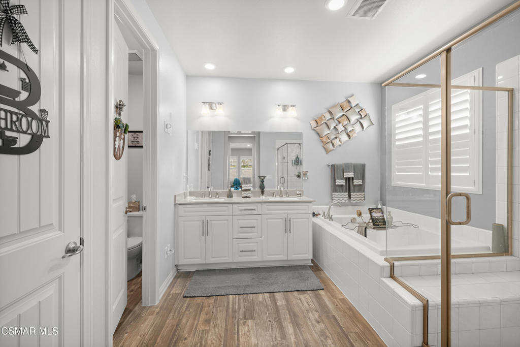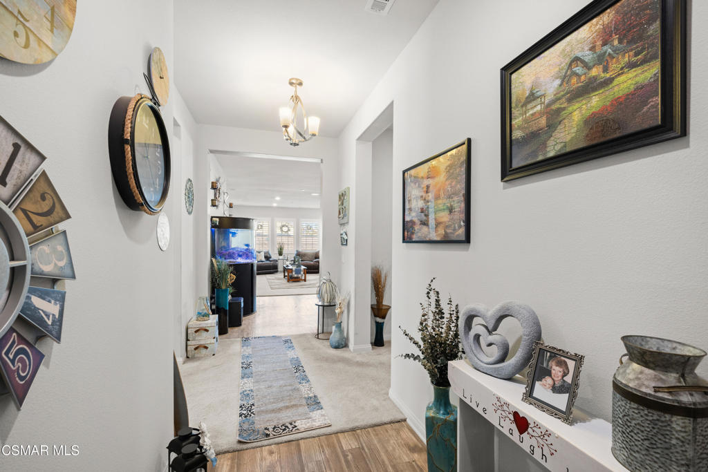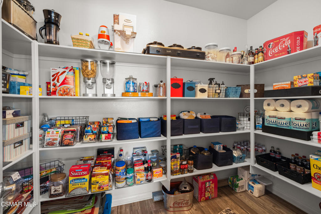 Welcome to 417 White Bark Lane, beautifully nestled against the foothills in the highly sought-after Woodlands community of Simi Valley. Built in 2016, this desirable single-story home offers owned, energy-saving solar panels and a light-filled open floor plan featuring 3 bedrooms, 2 bathrooms, plus a dedicated office that can easily be converted into a 4th bedroom. With over 2,400 sq. ft. of comfortable living space on a 7,400+ sq. ft. lot, the home enjoys scenic open-space views and no neighbors directly across the street. The open-concept great room flows seamlessly into the dining area and showcases a stunning center-island kitchen complete with granite countertops, abundant cabinetry, stainless steel appliances, a walk-in pantry, and a breakfast bar, ideal for both everyday living and easy entertaining. The spacious primary suite features his & her walk-in closets and a private en-suite bathroom with a dual-sink quartz vanity, soaking tub, and separate shower. Secondary bedrooms are generously sized with ample closet space and share a full hall bathroom. The low maintenance backyard includes a refreshing above-ground pool, patio area, and tranquil mountain views. Additional amenities include a direct access two-car garage, indoor laundry room, plantation shutters, recessed lighting, security system, and more. This is a wonderful opportunity to own a beautiful home in an exceptional community.