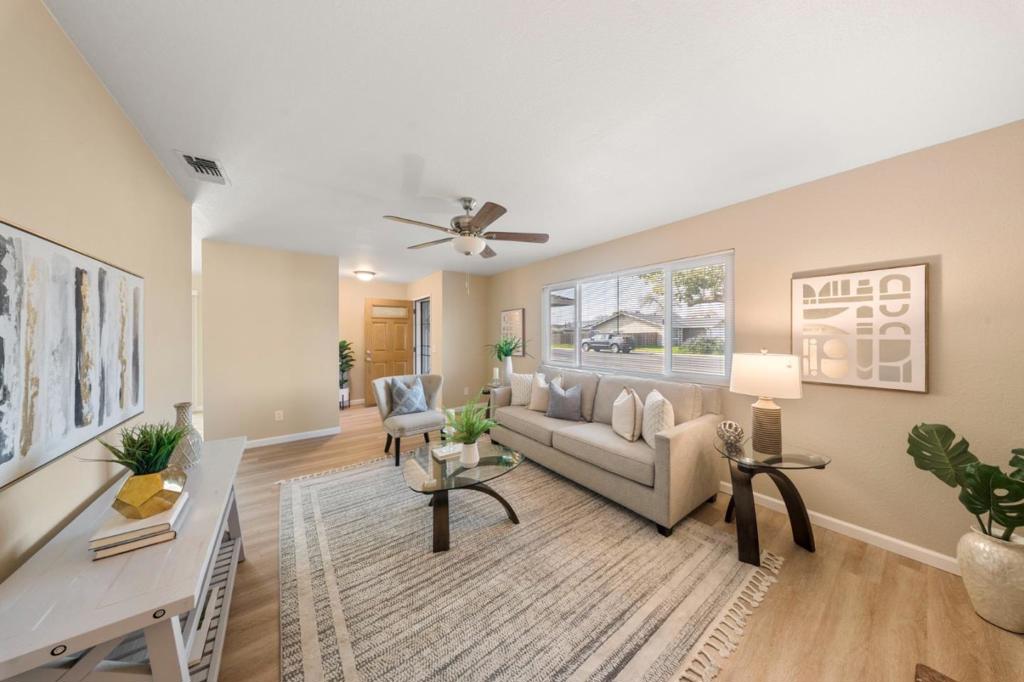 Welcome to this beautifully updated 3-bedroom, 2-bathroom home offering comfort, style, and versatility. Thoughtfully refreshed throughout, this residence features brand-new flooring, Milgard double pane windows and sliding door, modern soft close cabinetry, fresh paint throughout, updated lighting fixtures, and ceiling fans that create a bright and inviting atmosphere. The efficient layout provides seamless flow for everyday living and entertaining. The kitchen shines with new neutral colored cabinets and contemporary finishes. It is ready for your personal touch, offering a blank canvas for any culinary enthusiast. The property includes a spacious lot, providing ample outdoor space. Outside, the generous lot offers ample parking space perfect for your RV, boat, or recreational toys. The expansive backyard is a blank canvas ready for your vision whether you dream of creating an outdoor kitchen, garden retreat, play area, or entertaining space. Conveniently located near local schools, parks, shopping, and restaurants, this home blends modern updates with practical amenities. Don't miss the opportunity to make this versatile property your own in the vibrant city of Manteca.