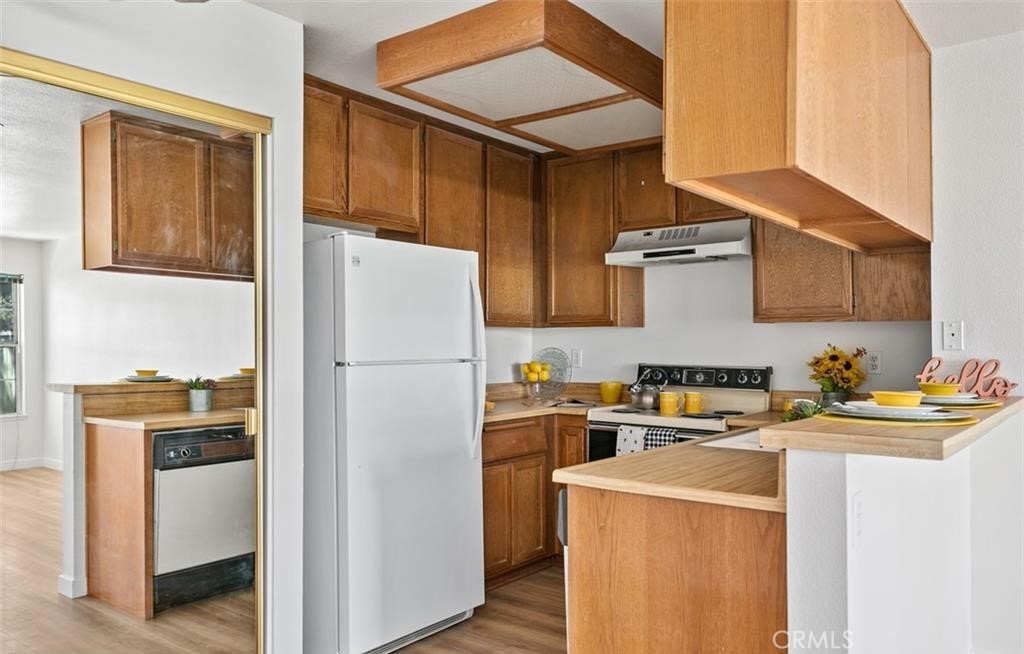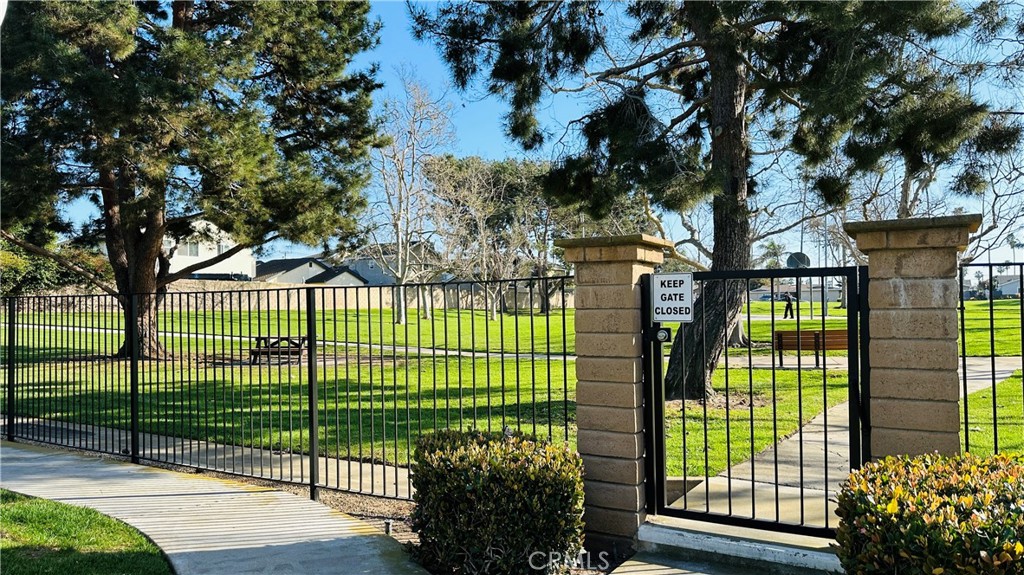 Ground-floor condo located in a desirable, gated 55+ community of only 98 homes in Huntington Beach, just minutes from the beach and local amenities. This home enjoys a peaceful park-front setting, facing Taylor Park with expansive greenbelts and mature trees that provide a serene and private backdrop. The spacious bedroom features a large walk-in closet offering abundant storage and convenient space for a stackable washer and dryer. The bathroom includes a single vanity and a shower-over-tub combination. The light and bright cottage-style kitchen offers Formica countertops, wood cabinetry, and an electric range. This well-established community offers comfortable, low-maintenance living in a prime coastal location. 1 assigned parking space. HOA fee includes water and trash. Please note: Per the HOA's CC&R's, at least one resident has to be 60yrs of age for the downstairs Units.