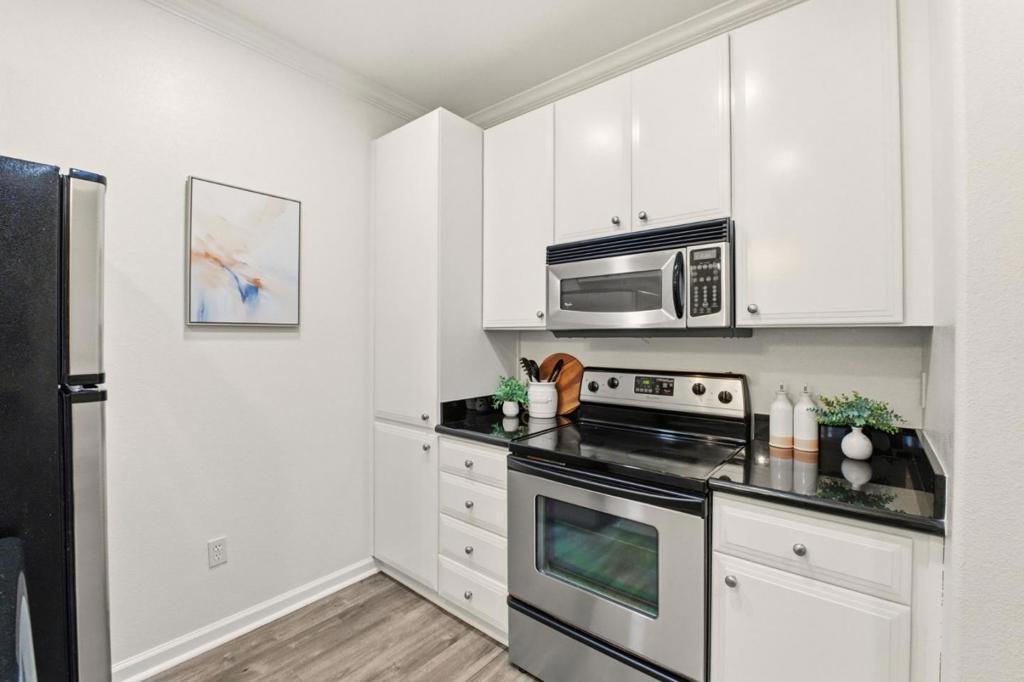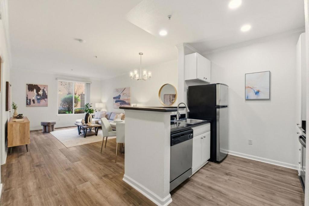 Courtyard-facing ground-floor condo located in a gated community in West San Jose. This is an end unit towards the back of the complex. The unit is freshly painted, updated kitchen, recessed lighting, and luxury vinyl planks flooring throughout the living room and bedroom. Functional layout with a spacious bathroom and walk-in closet. In-unit laundry, heat and A/C, and no stairs or elevator required. Community amenities include gated entry and secure underground parking. Conveniently located near Santana Row and Westfield Valley Fair, with easy access to shopping, dining, groceries, and major highways. Close to high-ranking schools. Move-in ready and well suited for owner-occupants or investors seeking a strong long-term rental opportunity.