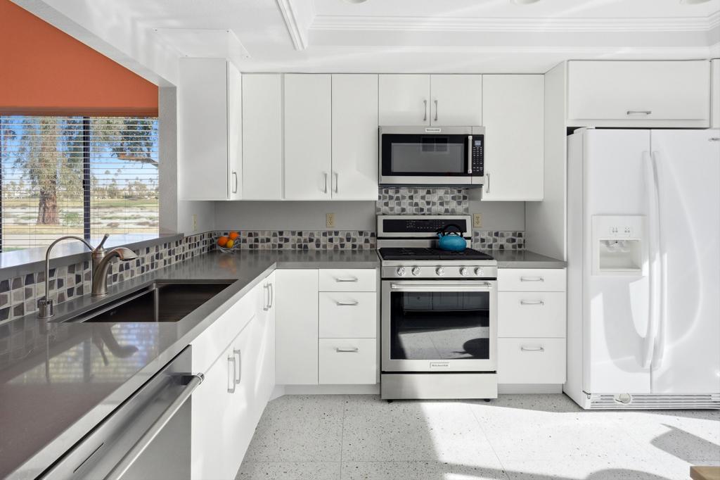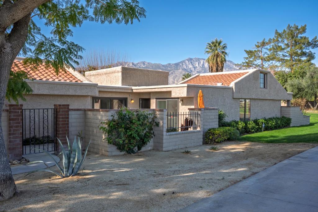Welcome to 2821 Calle Arandas, located in the prestigious West Gate community of Cathedral Canyon Country Club. Offering 1,452 square feet of sleek, modern living space and a coveted Palm Springs address, this home balances resort-style luxury with the comforts of a private retreat. Perfectly situated at the Northern tip of Calle Arandas, this property enjoys a trifecta of captivating views - golf course, mountain, and surrounding natural landscape.Elegant new tile flooring flows seamlessly throughout the entire home. You'll love the vaulted ceilings, natural light, and open floor plan. An updated kitchen features quartz countertops, new cabinetry, and new appliances including oven/stove, dishwasher, and microwave. Beyond, a large outdoor patio offers the perfect location to soak in the morning sunshine or evening entertaining and al fresco dining.Enjoy the luxury of a spacious primary bedroom with ensuite and custom closets. Direct patio access offers views of the adjacent golf course and San Jacinto Mountains. A second bedroom, also with ensuite and custom closets, offers privacy and serenity. In the center of the home is an atrium, open to the sky, acting as a natural light well and creating an environment of tranquility.An attached 2-car garage offers storage and convenience. Additional upgrades include a new HVAC system (2024), new Milgard sliders in living room and bedrooms, and new blinds.Cathedral Canyon Country Club features 450 acres of park-like environment including an 18-hole golf course and 10 tennis courts. Proximity to shopping, restaurants, Community Amphitheater, and the Agua Caliente Casino Cathedral City. The PSP International Airport and downtown Palm Springs are just minutes away.Perfect for your full-time residence, weekend getaways or seasonal living! HOA fee includes cable TV, internet, trash/recycling, exterior maintenance, and landscaping.