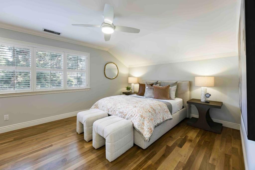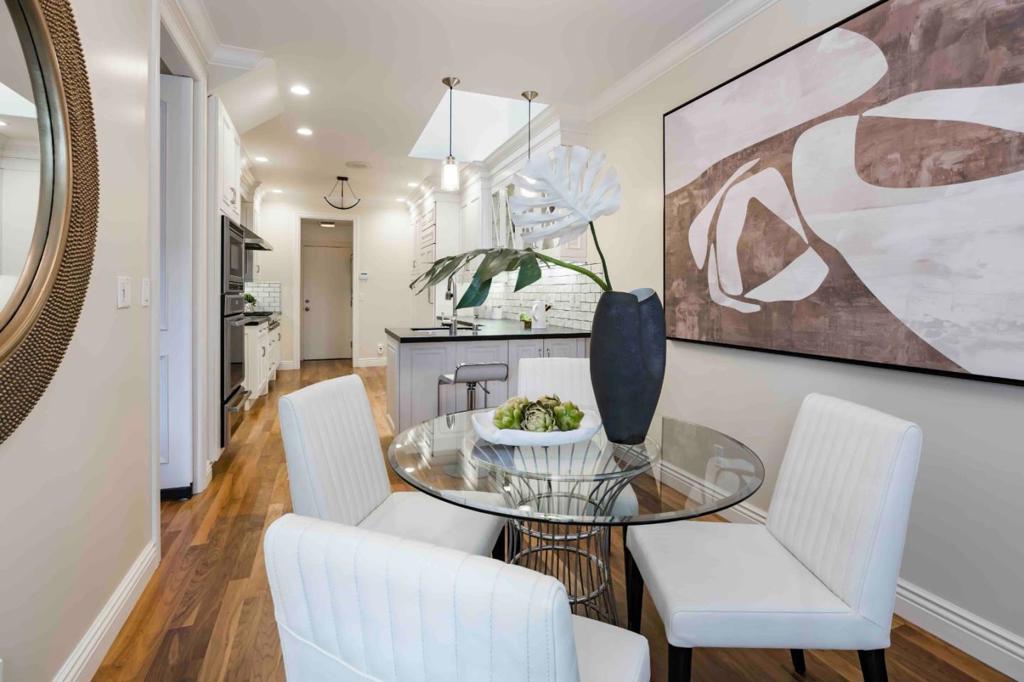 Nestled in a peaceful enclave just moments from downtown Menlo Park, this elegant townhome offers over 2,000 SF of living space, thoughtfully updated and designed for modern living. Rich walnut floors, fine millwork, and abundant natural light create a warm, inviting ambiance from the moment you step inside. The living room with a fireplace flows seamlessly into the dining room, while the beautifully appointed eat-in kitchen, equipped with top-tier appliances, is perfect for both casual meals and entertaining. Spacious and comfortable bedrooms include a luxe primary suite with a spa-like bath and an adjoining office for all work-from-home needs. Outside, a serene backyard provides the perfect setting for relaxation, while amenities such as air conditioning and a community pool and spa add to the appeal. All of this, in a prime location just minutes from downtown shops and restaurants, parks, and top-rated schools, with effortless access to Palo Alto and major commute routes.