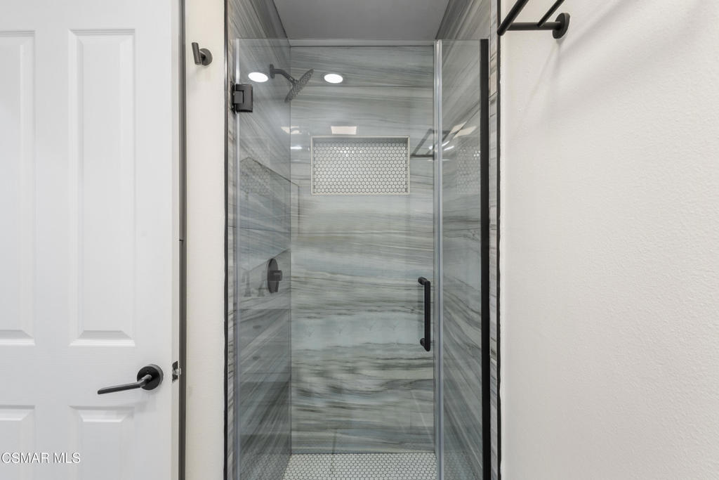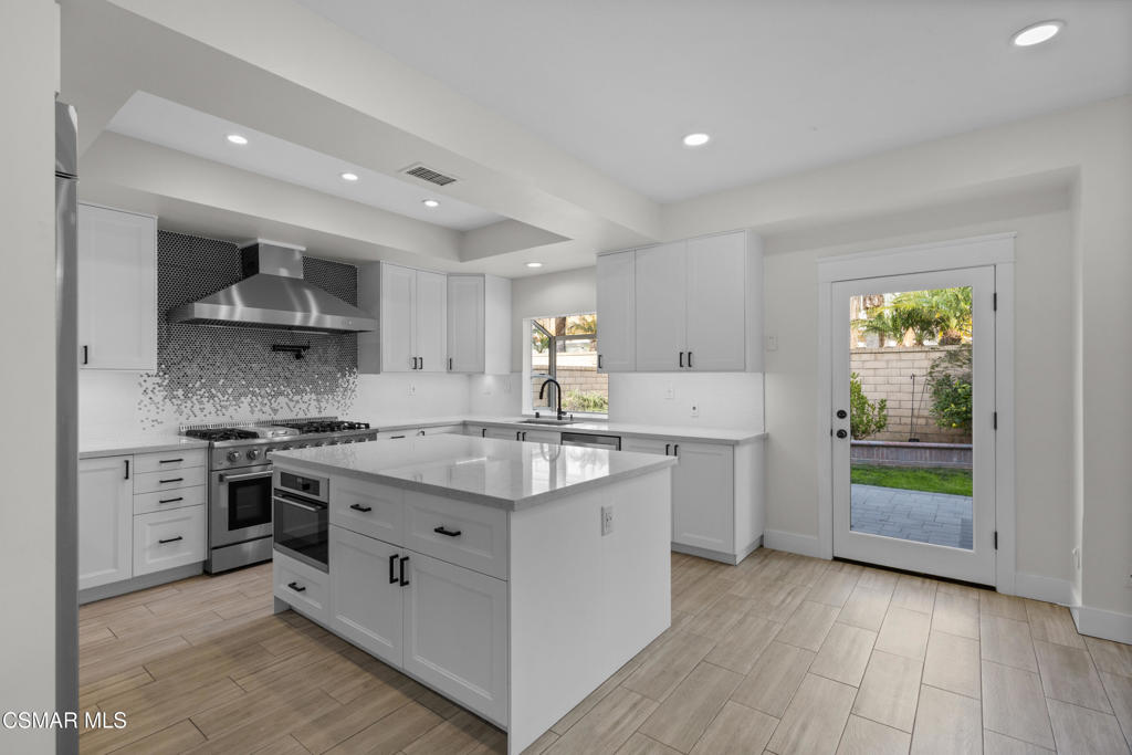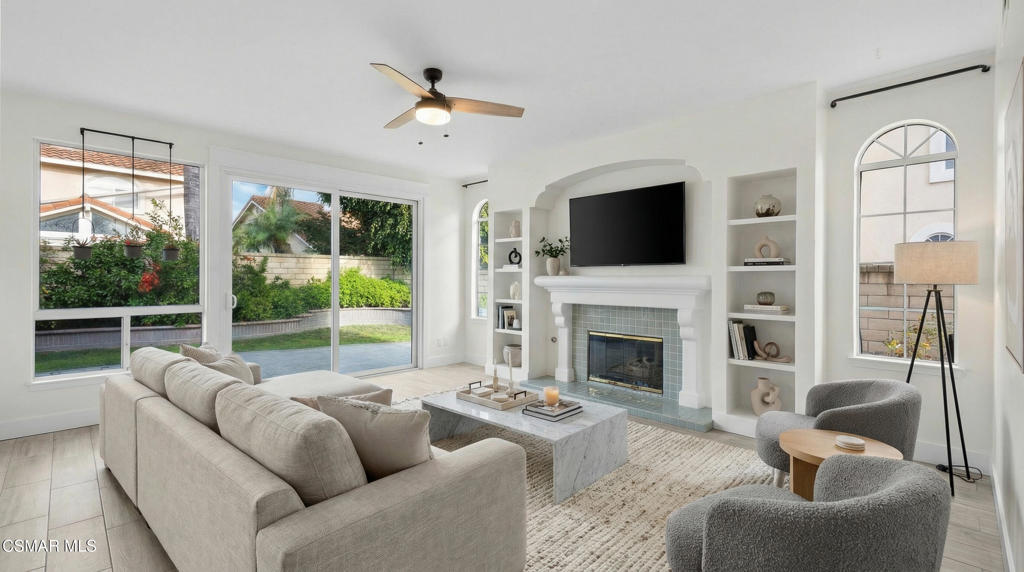 Nestled within the prestigious 24/7 guard-gated Rancho Conejo community, this beautifully remodeled home offers over 3,000 SF of thoughtfully designed living space in a serene and highly coveted setting. Owned Tesla solar panels with a battery wall provide exceptional energy efficiency, long-term savings, and peace of mind, complementing the home's extensive upgrades and turnkey appeal.Newly landscaped drought-tolerant grounds create strong curb appeal and welcome you inside, where soaring ceilings, expansive windows, and abundant natural light set an inviting tone. Custom lighting and built-ins at the entry make a striking first impression, while fresh interior paint and recently serviced appliances enhance the home's move-in-ready feel. The flexible floorplan features 4 bedrooms plus an oversized bonus room, offering ideal spaces for work, play, or guests. A downstairs bedroom with a built-in Murphy bed and an adjacent remodeled bathroom with walk-in shower provide excellent functionality for visitors or a home office.The fully renovated chef's kitchen is both beautiful and functional, showcasing quartz countertops, custom backsplash tilework, abundant cabinetry and pantry storage, and a large center island with built-in microwave. A Thor professional gas range with matching vent hood and pot filler anchors the stainless-steel appliance suite, while a bright window above the sink overlooks the backyard. The kitchen opens seamlessly to the family room with fireplace and direct patio access, creating an effortless flow for everyday living and entertaining.Upstairs, the primary suite is a private retreat with wood-like flooring, a designer painted accent wall, a private balcony, and 2 separate walk-in closets. The spa-inspired primary bathroom features custom tilework, an oversized walk-in shower, freestanding soaking tub, dual-sink vanity, towel warmer, and elegant fixtures. 2 additional upstairs bedrooms share a beautifully renovated hall bathroom, and an oversized bonus room with custom built-ins offers flexible and fun space for media, work, or play.The backyard is designed for entertaining, complete with a built-in BBQ area, 2 side yards, fruiting trees, and raised garden beds. An attached 3-car garage with direct access adds everyday convenience. Residents enjoy access to resort-style pools, a nearby park, and a prime location close to hiking and biking trails, shopping, dining, and acclaimed CVUSD schools. 1721 Blossom Court is truly the perfect place to call your home.