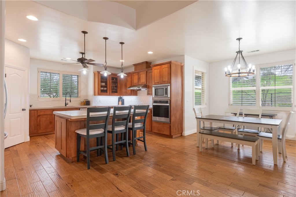 Discover Lake Living at its Finest at 3645 Delaney Place in Paso Robles, located within the amenity-rich Heritage Ranch community on the coveted South East point of Lake Nacimiento. This stunning property is perfectly situated on a generous 0.53-acre lot with a serene, fully-landscaped setting that features majestic canopy oak trees, a charming olive orchard, productive garden beds, a cozy fire pit, a refreshing outdoor shower, and abundant patio areas and walkways for extensive entertaining. The gorgeous home boasts a thoughtful layout with four spacious bedrooms—one currently configured as a custom office with built-ins and a desk—and two full bathrooms with double sinks. The luxurious primary suite is a true retreat, offering a walk-in closet, a soaking tub, a separate shower, and its own private patio. Entertaining is easy in the gourmet kitchen, which features a large island with breakfast seating, custom shake-style cabinetry, newer quartzite countertops, and beautiful hickory floors, and opens seamlessly into a huge family room anchored by a lovely stacked stone fireplace. Key features and bonuses include a 3-car garage with plenty of built-in storage, including a larger single bay capable of housing a 19-foot pontoon boat, owned solar system with two Tesla Powerwall batteries for energy independence, and a huge attic space for additional storage. The Heritage Ranch Lifestyle Awaits, as residents gain access to an unparalleled list of resort-style amenities such as lake access with a launch ramp, pools, parks, picnic spots, sports courts for pickleball, basketball, and tennis, a recreation barn, an equestrian center, a dog park, RV and tent camping areas, and access to numerous hiking and horseback riding trails, along with the convenience of an on-site grocery store, gas station, and restaurants. Your search ends here—inquire today about 3645 Delaney Place and find the perfect spot to call home.