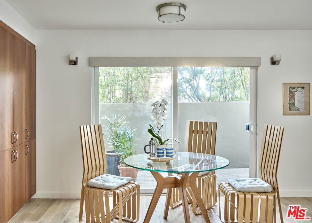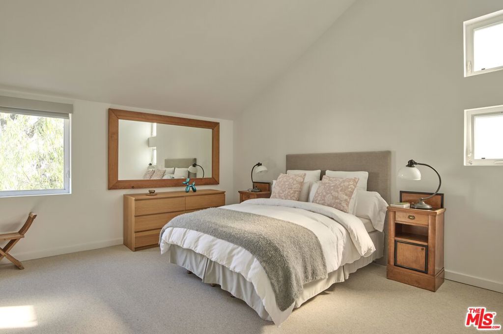 Architecturally striking and filled with natural light, this contemporary 2-bedroom, 2.5-bath townhome offers approximately 1,894 square feet of dramatic, design-forward living space across multiple levels. Clean modern lines, exposed structural elements, and soaring ceilings create a true sense of volume, while oversized windows and skylights flood the interiors with light throughout the day. The main living areas unfold in an open, loft-like configuration, anchored by warm wood floors, custom built-ins, and sleek metal railings. The kitchen integrates seamlessly into the living space, featuring stainless steel appliances, generous counter space, and a layout well suited for both entertaining and everyday living. Multiple private outdoor spaces extend the home's livability, including a tranquil courtyard and an upper-level terrace ideal for morning coffee or evening relaxation offering a rare indoor-outdoor experience in this setting. The primary suite is a peaceful retreat with vaulted ceilings, abundant natural light, and a spa-inspired bathroom complete with a soaking tub, glass-enclosed shower, and refined finishes. A second bedroom provides flexibility for guests, a home office, or creative space. Additional highlights include a gated parking area with a private garage, thoughtful storage, and a layout that balances architectural drama with comfort and privacy. Ideally located near Montana Avenue's shops, cafes, and everyday conveniences, and just moments from the beach and ocean, this residence offers effortless access to the best of Santa Monica living in a setting defined by modern design and architectural character.