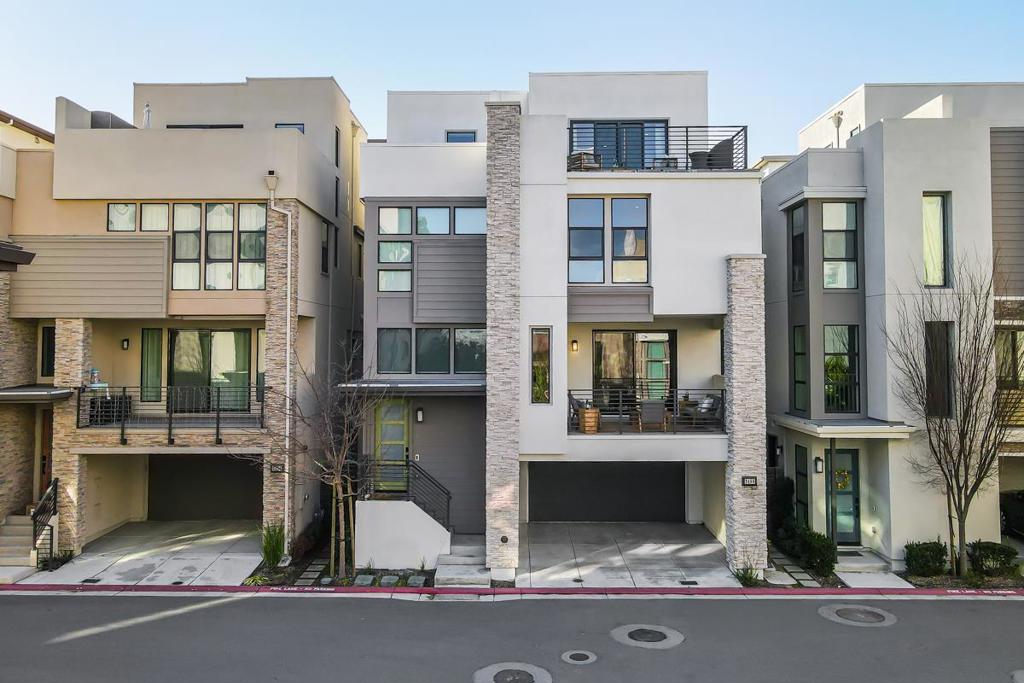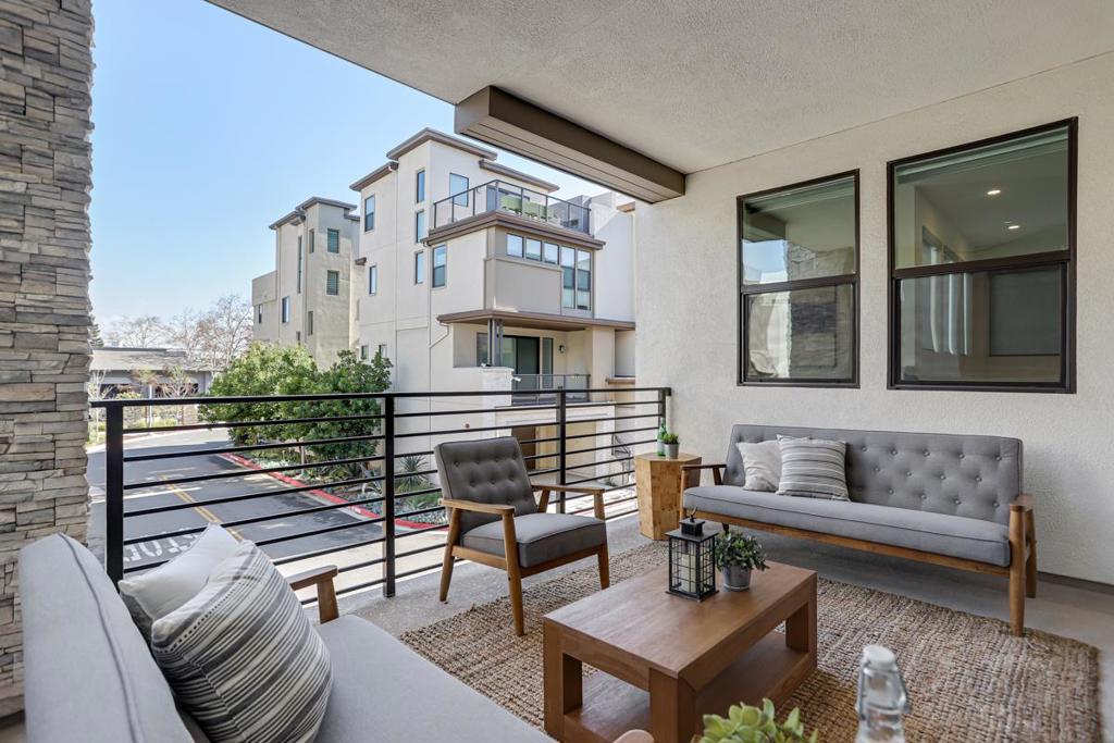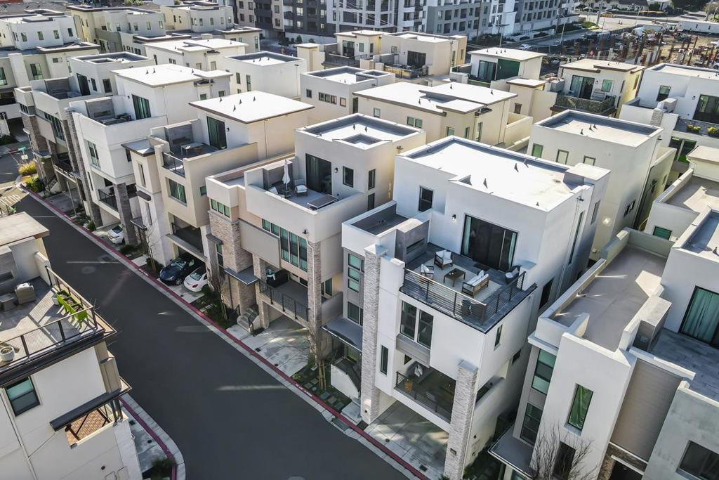 Welcome to a masterclass in modern living! This stunning ultra-modern home offers a seamless open floor plan flooded with natural light. The main level features beautiful white oak hardwood flooring and a chefs dream kitchen, boasting a colossal center island with seating, stainless steel appliances, ample white shaker cabinets, & sleek modern hardware. Large sliders transition the living area to an expansive patio. Ground floor features bedroom and full bath. The primary suite is a sanctuary featuring two walk-in closets and a spa-like bath with dual vanities, a sit-down vanity, a massive walk-in shower, and a private water closet. Two additional bedrooms share a Jack-and-Jill bath, while a laundry room with a sink & storage adds daily convenience. The top-floor loft provides a versatile escape with a full bath and a spectacular outdoor/rooftop patio featuring a cozy fireplace. The lower level hosts a fourth bedroom with backyard access and a full bath. Additional premium features include LED recessed lighting, a tankless water heater, water softener, and dual-pane windows with custom/motorized window treatments throughout. Complete with a two-car garage featuring epoxy floors and custom shelving, and covered carport. All situated in Santa Claras newest modern community.