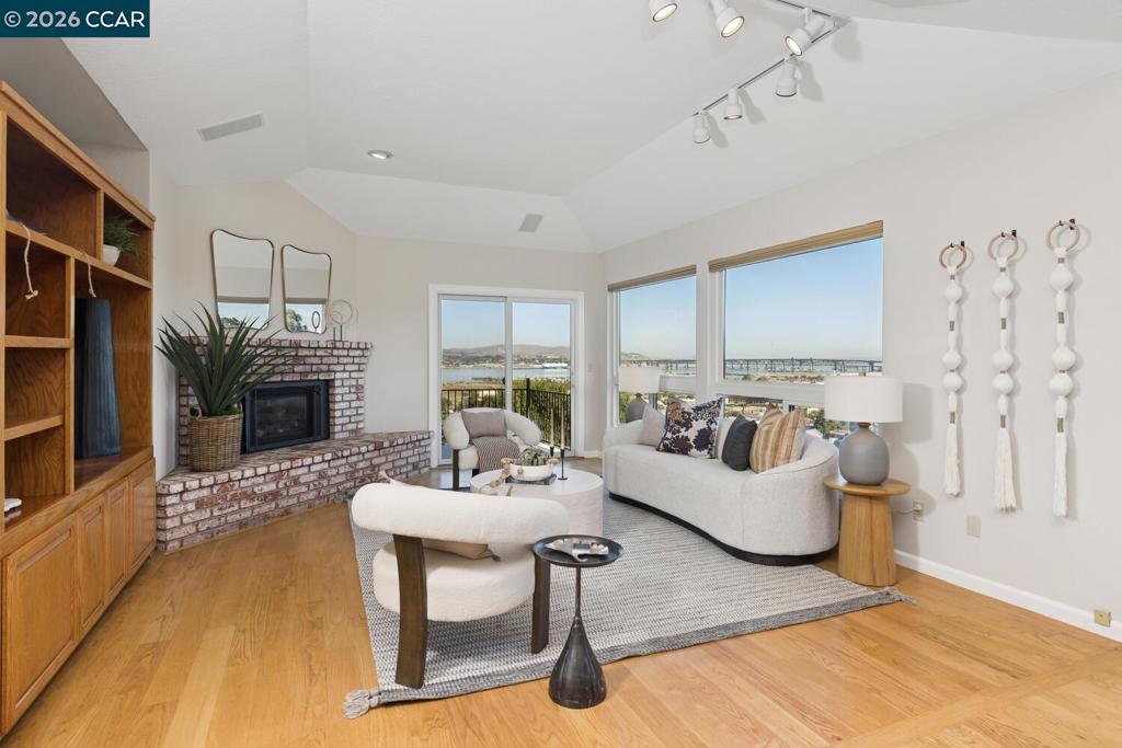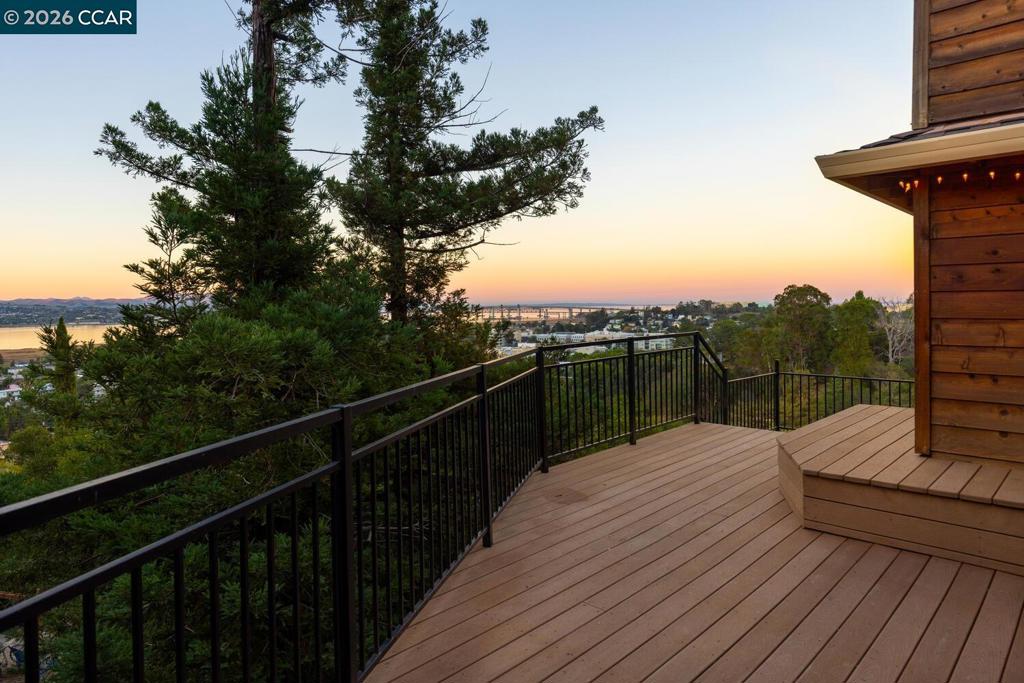 One of a kind view of the Carquinez Strait from this custom home with three levels of decks. With all the main living spaces on the street level, this home is perfect for entertaining. The spacious kitchen with solid countertops and eat in breakfast area are perfect for morning conversations or for multiple cooks preparing evening meals. The second level hosts 3 bedrooms and 2 bathrooms. The graciously sized primary suite includes a walk in closet, an oversized shower and a private deck with beautiful evening views of the marina and sparkling bridge lights. The lower level has bonus spaces including including a room that can be a fourth/guest bedroom as well as an office space with built-in desk. Stunning views of the Carquinez Strait and downtown Martinez. Views: Carquinez, Downtown
