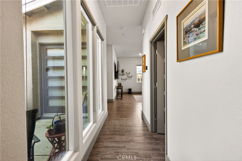 Welcome to this beautifully designed home that blends modern comfort with thoughtful functionality. The main residence features 3 spacious bedrooms and 2 bathrooms, complemented by an attached ADU featuring 1 bedroom, 1 bathroom, and a walk in closet - perfect for extended family, guests, or additional living flexibility. Inside, the open floor plan is enhanced by wood look tile flooring throughout, creating a clean, cohesive feel. The large kitchen is a true centerpiece, featuring double sized refrigerator and freezer units, a huge island, built in pantry cabinetry, and pull out shelves in the kitchen cabinets for effortless organization. Blackout pull shades and classic plantation shutters provide both style and comfort throughout the home. The primary suite offers a relaxing retreat with a large walk in shower and soaking tub, while modern 6 panel doors throughout the home add a sleek, contemporary touch. The home is also equipped as a smart home, offering added convenience and efficiency at your fingertips. In addition to its flexible living space, the attached ADU provides a valuable income producing opportunity and is currently generating revenue, making it an excellent option for buyers seeking supplemental income or multi generational living. Situated on a desirable corner lot with peaceful park views across the street, this home offers both privacy and a scenic setting. Step outside to your private backyard oasis featuring a pool with an indigo blue pebble finish plaster and a built in hot tub, surrounded by sea shell cool artistic paver decking, a specially designed man made tile that stays cooler than traditional concrete. Raised garden beds add charm and functionality for outdoor enthusiasts. This home showcases quality finishes, smart features, and versatile living spaces all in one exceptional property. Homes with this level of upgrades, views, and income potential are rare and this one will not last long.