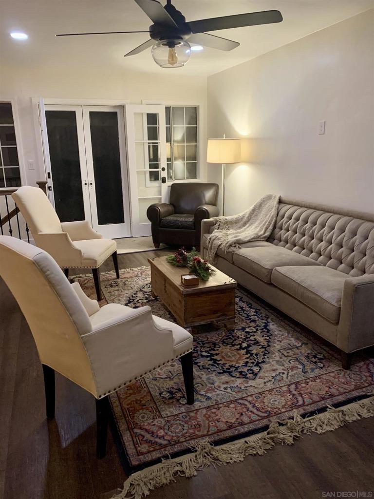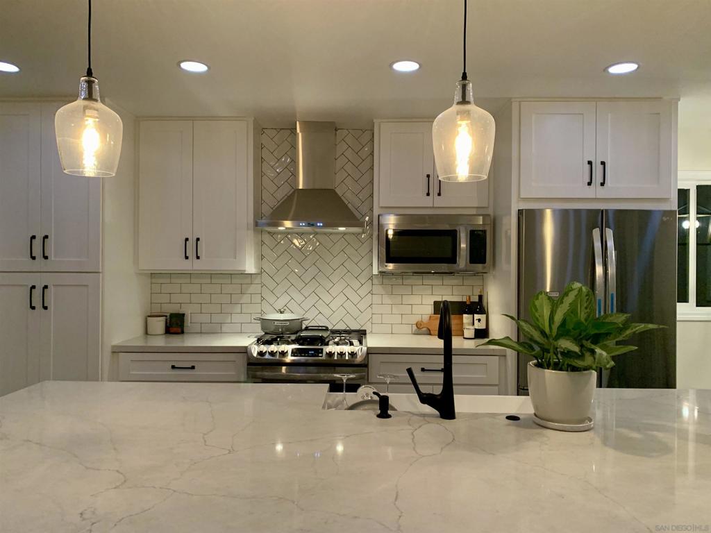 Quiet, private, and showcasing stunning sunset views, this light-filled 3-bedroom, 2-bath home is set on a secluded ¼-acre lot, elevated above street level for added privacy and sweeping vistas. With ample driveway parking and a tranquil porch this home is perfect for relaxing, enjoying the views, and listening to birds chirp among mature trees, flowering plants, and citrus. The interior is light and bright with an open, comfortable layout designed to maximize natural light and views and features newer luxury vinyl flooring throughout. The fully remodeled kitchen and living spaces feel airy and welcoming with windows positioned to bring the outdoors in and create a calming connection to the surrounding landscape. The back yard has newer turf, a Tuff shed, fire pit area, and a new patio cover. The home offers three well-sized bedrooms and two bathrooms, providing both comfort and functionality. A separate downstairs entrance adds flexibility for guests, a home office, or extended living arrangements. Spacious front and backyard areas with mature trees provide room to entertain, garden, or relax in a private outdoor retreat. No HOA and no Mello-Roos. Located just blocks from La Mesa Village, enjoy easy access to shops, restaurants, and community events—combining peaceful living with vibrant neighborhood charm.