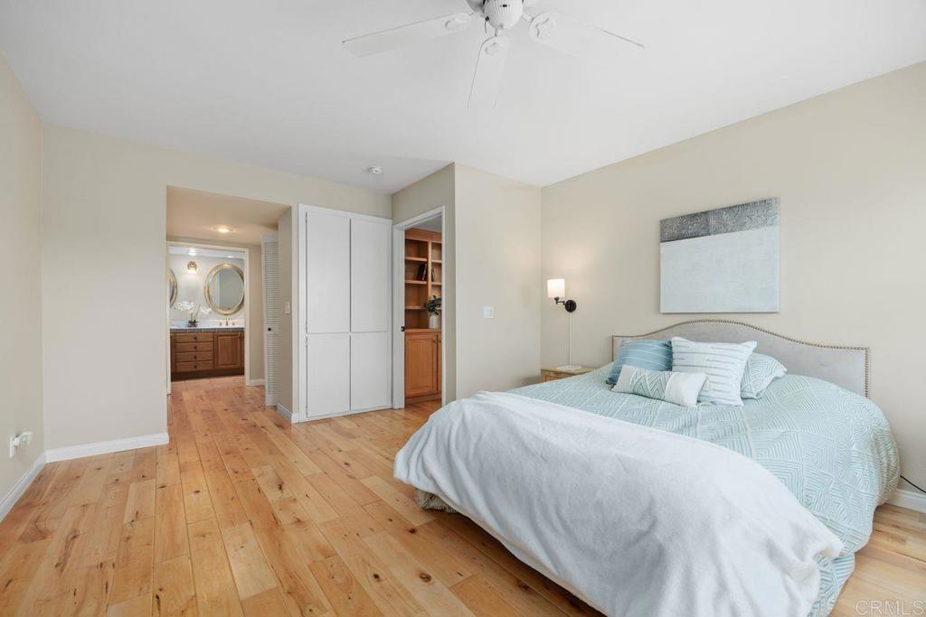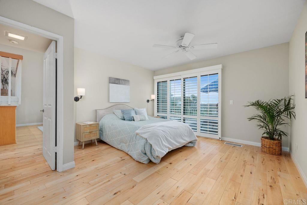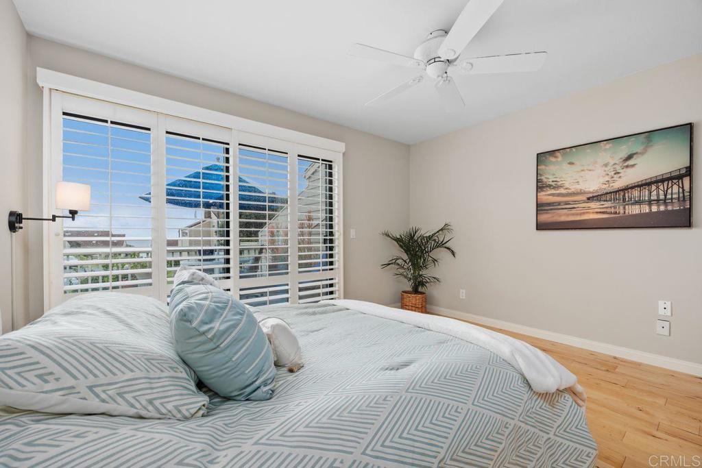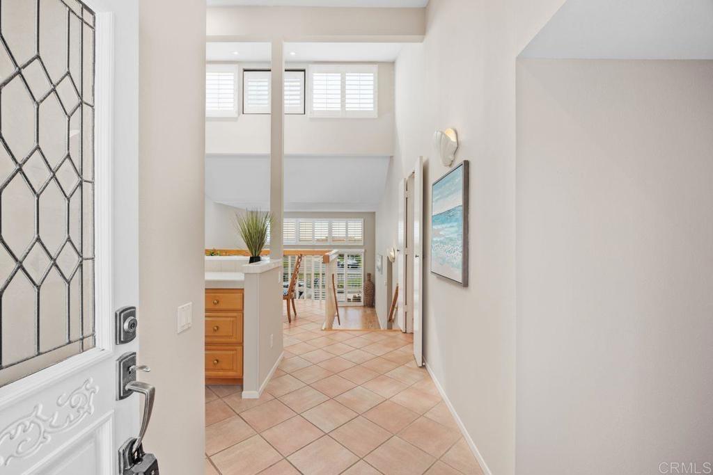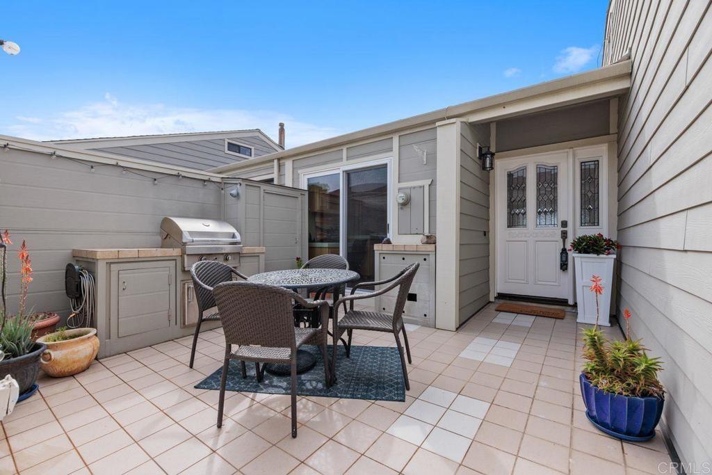 Enjoy impressive ocean views from the moment you walk in, offering an elevated beach lifestyle in the prestigious guard-gated Seabluffe community of Encinitas. Vaulted ceilings, abundant natural light, hardwood and tile flooring, plantation shutters, and an open-concept layout create a bright and welcoming atmosphere. The spacious living room flows seamlessly to an expansive Trex deck—perfect for entertaining or unwinding with the ocean as your backdrop. The updated kitchen features stainless steel appliances, pull-out cabinetry, generous counter space, and a built-in desk area, with direct access to a private front patio complete with a built-in BBQ island. Central air and a soft water system are also in place for added comfort and convenience. The primary suite is located just a few steps down from the main living area, featuring direct deck access, ocean views, and an ensuite bath with dual sinks, shower, and walk-in closet. A second bedroom near the entry includes built-in cabinetry and workspace. Upstairs offers a large third bedroom or family room with a corner fireplace, half bath, walk-in closet, and an additional office with skylight. Includes a detached two-car garage with ample storage. Ideally located west of Hwy 101, Seabluffe spans over 50 acres with 255 homes and offers resort-style amenities including two pools, spa, tennis, pickleball, clubhouse, playground, basketball court, social events, and DIRECT BEACH ACCESS. The community allows 7-day minimum rentals, offering excellent investment potential just minutes from top restaurants, shops, and the best of coastal Encinitas!