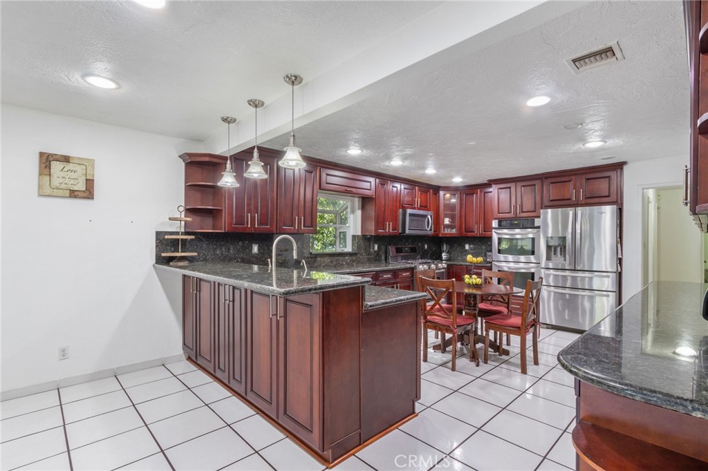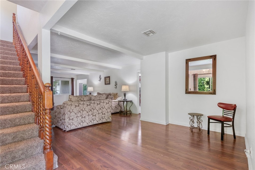 Nestled behind mature hedges and an automated gated entry, this contemporary residence offers privacy, charm, and exceptional future potential on an expansive 16,466 sq ft lot. A long stamped concrete driveway leads to a detached 2 car garage and provides generous parking for 8 to 12 vehicles, creating both convenience and impressive curb presence. The home features a welcoming layout with hardwood flooring, a beamed ceiling, and a cozy fireplace anchoring the living room. The well appointed kitchen is complete with custom cabinetry, granite countertops, and stainless steel appliances. With two bedrooms conveniently located downstairs and three upstairs, including a spacious primary suite with a large private balcony, the floor plan offers both flexibility and comfort. Designed for true indoor outdoor living, the property showcases multiple patio areas, a gazebo with built in BBQ, and beautifully landscaped grounds ideal for entertaining. The backyard is a private oasis featuring a sparkling pool with diving board and slide, fountain, koi pond, a variety of fruit bearing trees, a tree house, and a dedicated play area. The oversized lot presents excellent ADU and SB9 development potential, offering a unique opportunity for expansion, additional income, or multi generational living. A rare offering combining comfort today with upside for tomorrow, all within a peaceful residential setting.