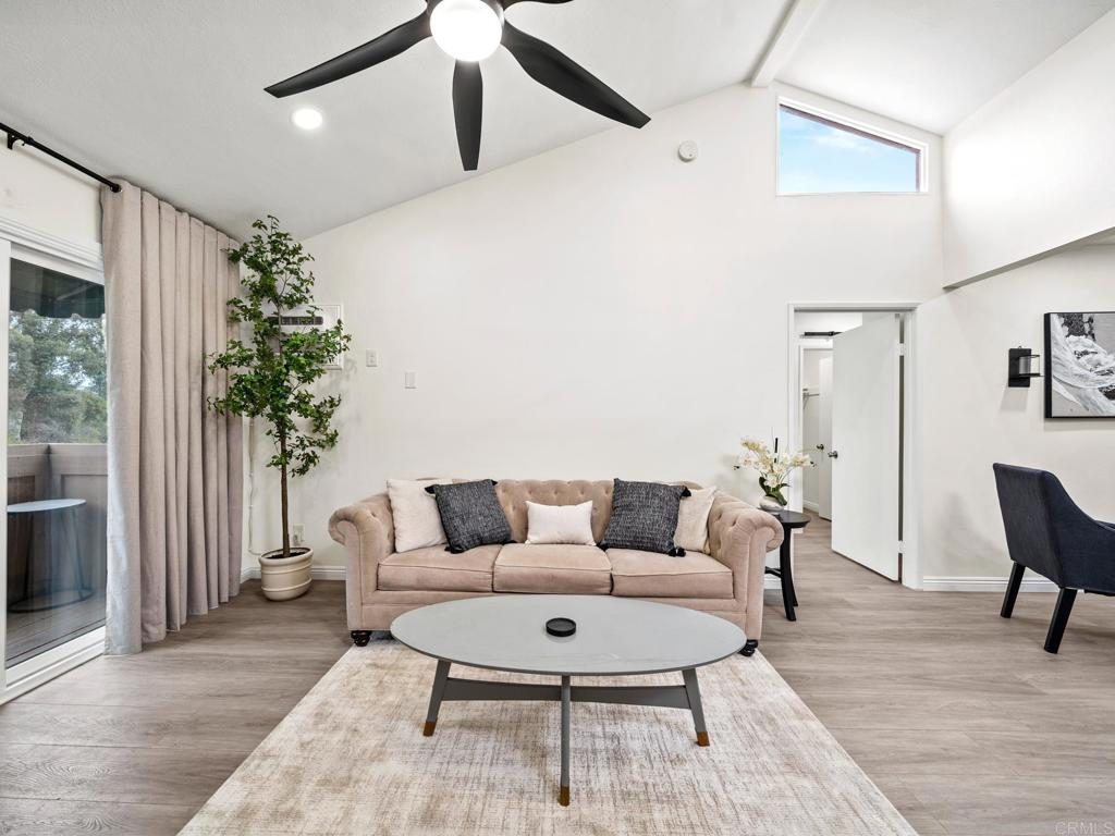 Step into this turnkey, move-in-ready 2nd-floor condo, perfect for first-time buyers, downsizers, or high-demand housing for military and healthcare providers. This VA-approved home features recent premium-grade upgrades, neutral paint, vaulted ceilings, updated LVP flooring, recessed lighting, and new ceiling fans throughout. The open living area boasts a beautiful tile fireplace, while the kitchen features granite countertops, custom real wood cabinets, a modern black sink, and stainless appliances. Positioned as a hillside-facing unit for maximum privacy, enjoy quiet views through newer windows, new coverings, and a patio slider. The primary suite is a true retreat with a large walk-in closet and a separate vanity area upgraded with quartz countertops, a high backsplash, and high-end, custom-designed cabinetry expanded for superior storage. Highlights include a new AC unit, private balcony with storage, carport parking, and a resort-style pool. Ideally located with quick access to Hwy 54, military bases, hospitals, and Rohr Park. With area rents at $2,200/mo, it’s a prime investment or low-maintenance home! Disclaimer: All info deemed reliable but not guaranteed; should be independently verified.