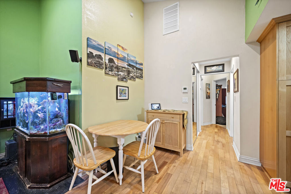 The Villas is a small complex convenient to the freeway and beaches. This secured building features controlled access, gated entry, and a parking garage with dedicated spaces. This property presents a great opportunity for buyers or investors, featuring a floor plan that boasts vaulted ceilings, abundant natural light, and light-toned hardwood floors. The interior is designed for comfort and efficiency, featuring a security door, double-paned windows, central air/heating, and a whole-house fan. The living room is equipped with hardwired internet, a multi-speed ceiling fan, and a skylight. Newer window coverings with wooden sills add a refined touch, while the high-quality surfaces and bathroom tile have been professionally sealed. The kitchen and laundry area includes a gently used LG Direct Drive washer/dryer and custom shelving. The primary suite offers vaulted ceilings, a swivel TV, and a misting shower head. Both bedrooms feature mirrored closets with organizational racks, with additional storage in the attic and linen closet. Originally built in 1984 and converted in 2006, this home includes dedicated office space and matching finishes kept in storage. This end unit is ready for immediate move-in and includes a south-facing front door and private patio.