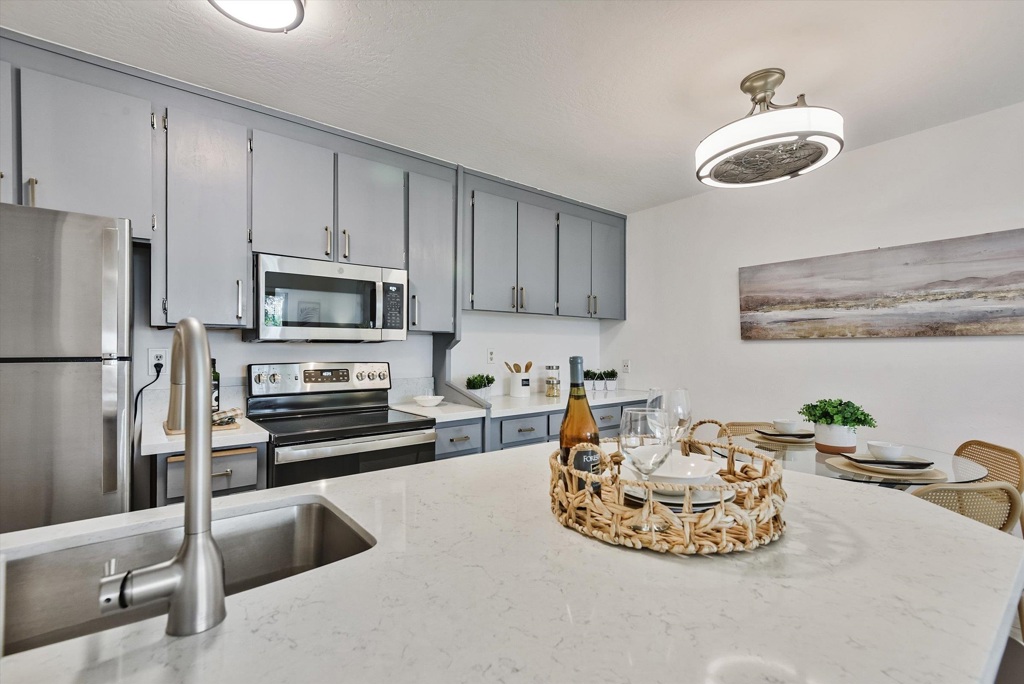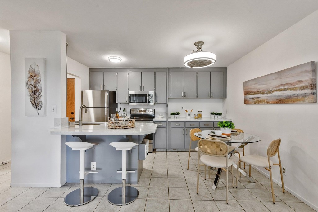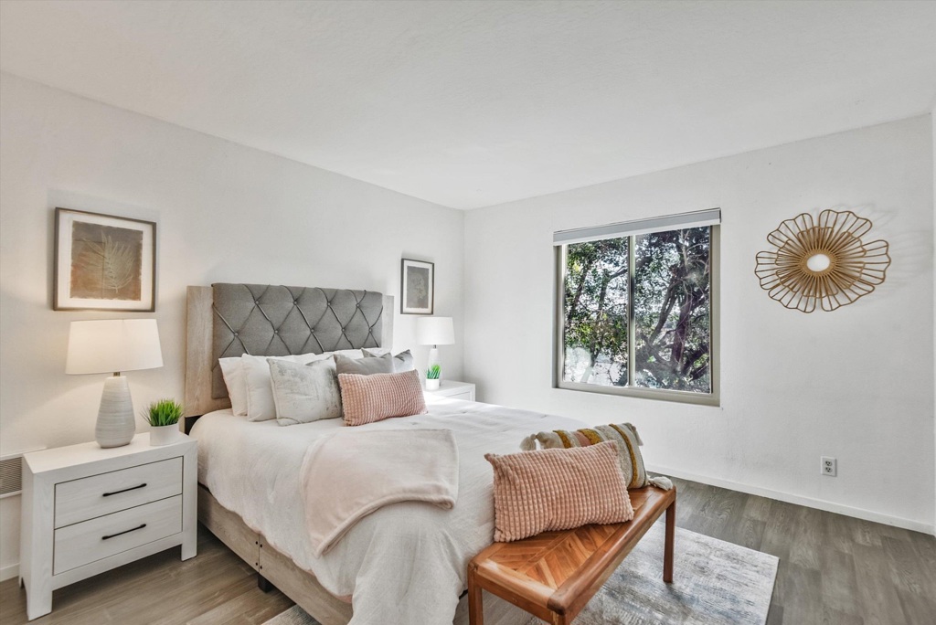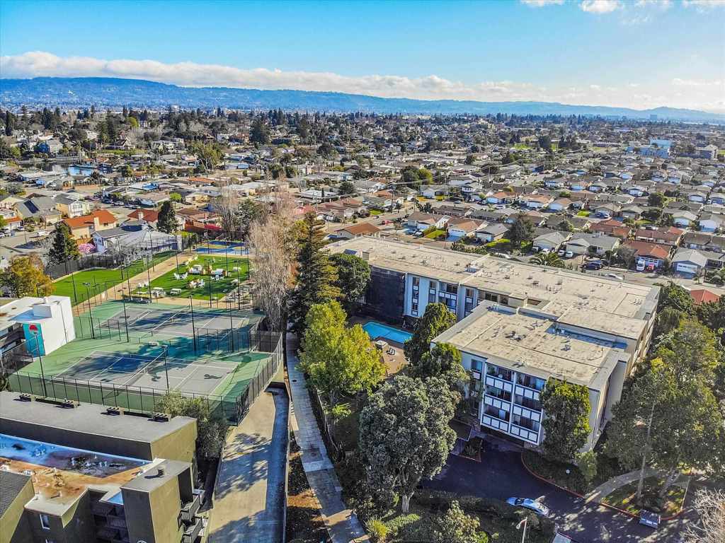 Exceptionally private 1BR retreat with treetop views just three blocks from the beach. Tucked on the second floor and set back from the street, this serene home feels like living above it all - filtered views of the Oakland Hills and Alameda rooftops through mature greenery create a rare sense of calm and seclusion. A covered balcony extends the living space outdoors - perfect for morning coffee, evening wine, or simply enjoying the peaceful outlook. The airy layout is welcoming and efficient, featuring an updated kitchen with a full wall of cabinetry for exceptional storage and a charming dining area for everyday meals or entertaining. The spacious bedroom offers tranquil views and privacy. A large vanity area includes two generous closets and is conveniently separated from the bathroom with a shower-over-tub combo - ideal for guests and daily routines. Generous windows bring in soft natural light throughout. This well-run community includes a pool, dedicated parking, and extra storage. Walk three blocks to the beach, explore Crown Memorial Beach and Crab Cove State Parks, or bike to Webster Street’s shops and restaurants. A rare blend of privacy, comfort, and coastal convenience in a prime Alameda location.