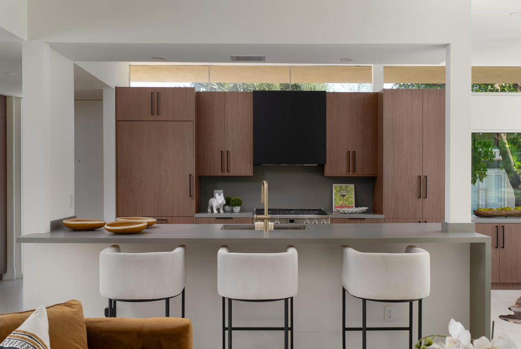 Your modernist dream home awaits in this gorgeously remodeled, 2bed/2bath, at the coveted Seven Lakes Country Club! Originally designed by Richard A. Harrison, inside its shadow-blocked walls, this spacious unit is freshly redesigned for today's living. Spread out over the 1,545 sq ft open floor plan, highlighted by large format tile floors, and get ready to entertain in style! The new kitchen is finished with custom Italian cabinetry, and high end appliances including a commercial grade, paneled Fisher & Paykel refrigerator, a wine fridge, plus a large breakfast bar. Walls of glass sliders open out onto a green leisure terrace with views of the mountains and the iconic Southridge estates. Enclosed for maximum privacy, the northern window wall opens onto a large private courtyard, sited to include wraparound mountain views and lined with a desertscaped perimeter garden. Both spacious bedrooms offer sleek custom closets, as well as walk in rain showers in both beautiful baths. The tranquil pool is just steps away. Past the 24-hour guarded gate, 'The Gem of the Desert' offers a unique elevated lifestyle with its Ted Robinson-designed 18-hole executive golf course, 15 pools and spas with poolhouses, and the lively William Cody designed clubhouse waiting to welcome you to its formal dining room, casual cocktail lounge, and a terrace overlooking the waterfall-fountain. Welcome home!