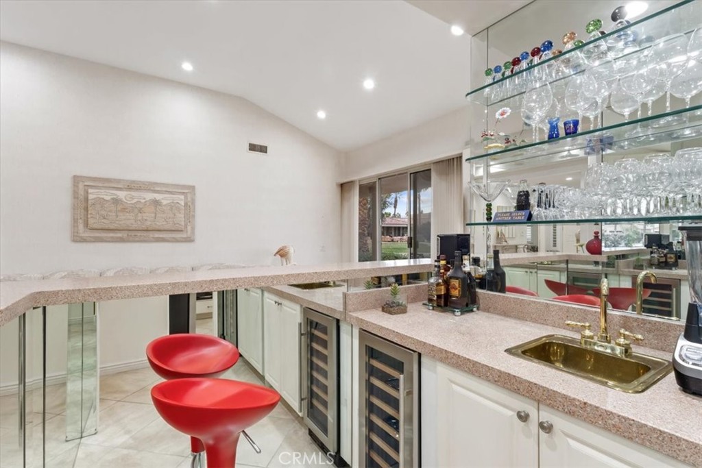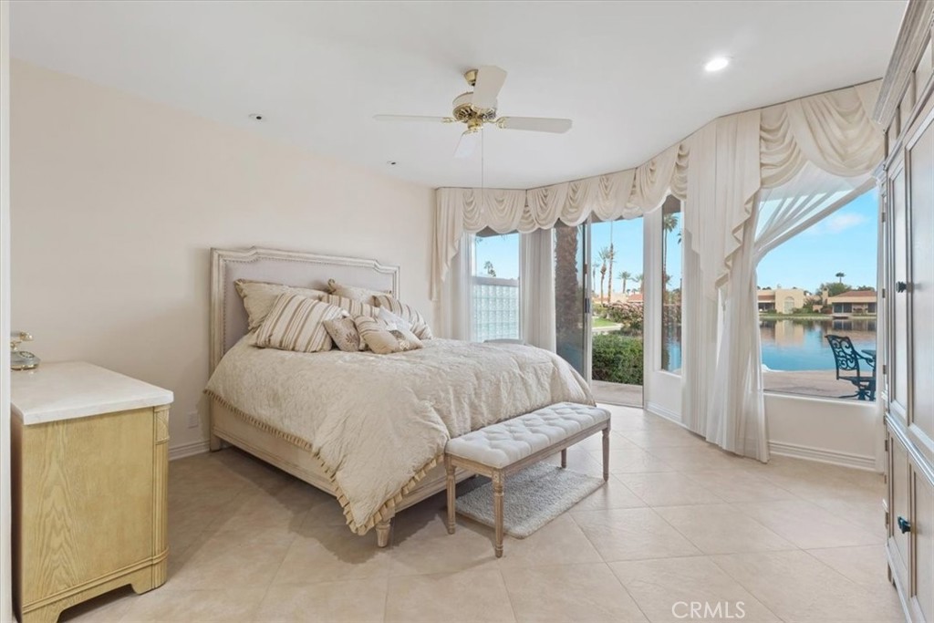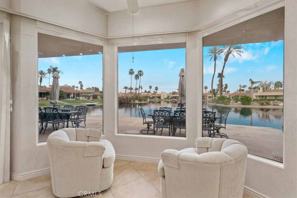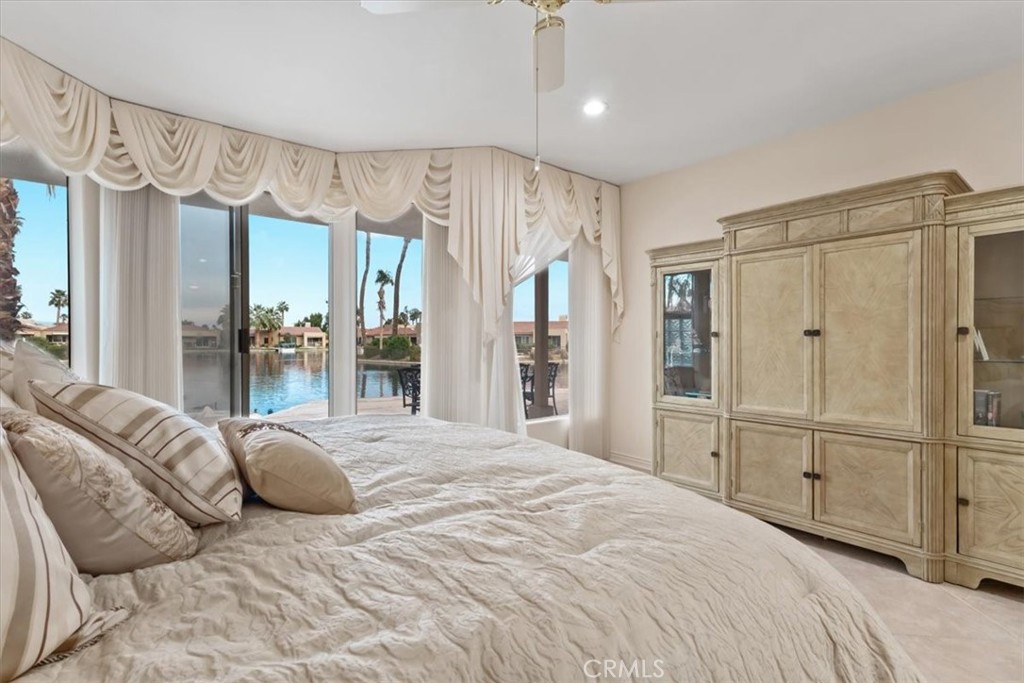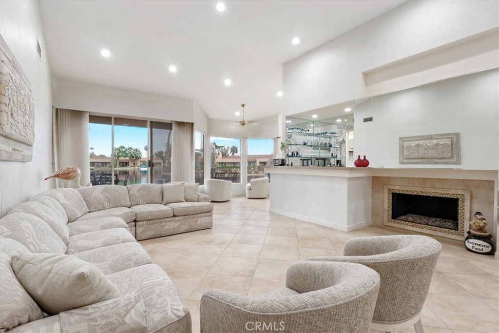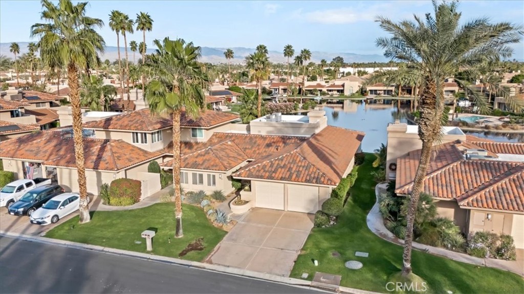 Experience luxury lakefront living in this beautifully maintained one story, 3-bedroom, 3-bath, 2,625 sq ft residence located in the prestigious guard-gated Lake Mirage community (only 238 homes/condos). This highly desirable floor plan offers abundant natural light, high ceilings, an open-concept design, and seamless indoor-outdoor flow. The spacious step-down living room features a cozy fireplace, wet bar, and an inviting layout perfect for entertaining. Each bedroom offers direct access to its own bathroom, including two primary suites with oversized spa-inspired baths. Primary bathrooms include soaking tubs, separate showers, double sinks, and private toilet areas for added comfort and privacy. Take in breathtaking lake and southern mountain views from the expansive waterfront patio and your private dock. Enjoy resort-style amenities including 11 pools/spas, 10 tennis courts, 4 pickleball courts, clubhouse, fitness center, plus boating, kayaking, and an attached 2-car garage with direct access - minutes to shopping, dining, and Palm Springs Airport.