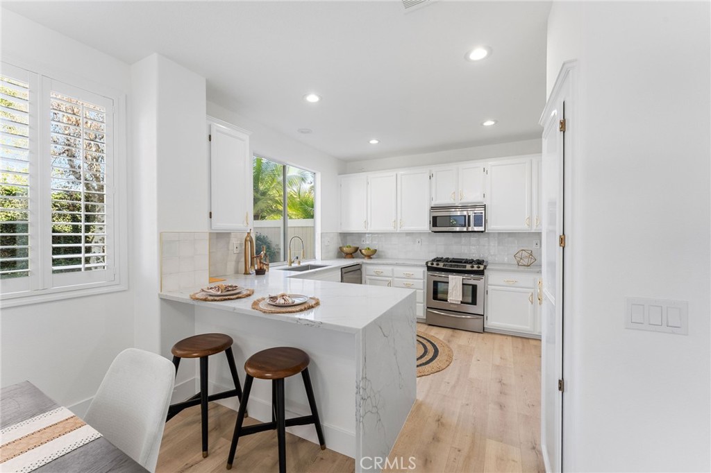 Are you looking for the latest in design, custom renovations with timeless upgrades? Then look no further, this home truly checks all of the boxes from a lush private yard, beautifully designed primary suite with plenty of closet space and four fixture on suite bath. The gourmet kitchen opens up to warm and cozy family room with fireplace. The high ceilings, beautiful windows, bring in a true tranquility and natural light. Each bedroom has an on suite bath. The main floor features a very private bedroom and bath off of the front that can be used as guest quarters or a very nice office. There is easy access to shopping, the 73 freeway and entertainment. Reach out today for your exclusive and private tour today.