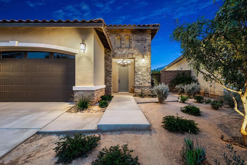 Welcome to this highly upgraded, never been rented, popular, Cetrine Plan 5 in the Signature at PGA West. With southern and western mountain views, a pie-shaped courtyard with plenty of sun all day on the pool. and spa, this one has it all! Built in 2022 and proudly maintained, this highly upgraded 3-bedroom, 3-bath home with a 2-car plus golf cart garage has a fully owned 19-panel solar system, keeping the electric bills to a minimum. Enter through your private gate, to your spacious courtyard pool, spa, and Santa Rosa mountain views. Inside, the great room design opens to the pool and courtyard with plenty of natural light. The kitchen is spacious and features a waterfall quartz countertop, a center island, dual ovens with a built-in air fryer, and a refrigerator with a built-in Keurig coffee maker. There are so many upgrades, it's difficult to list them all, but some include upgraded pool/spa and heater, high-end landscaping/lighting, remote control custom blinds in all rooms, upgraded cabinetry throughout, upgraded insulation including garage, upgraded showers/bath, sinks, faucets, custom lighting(See attached complete list of upgrades). This community includes a clubhouse, fitness center, and community pool. Fully furnished.