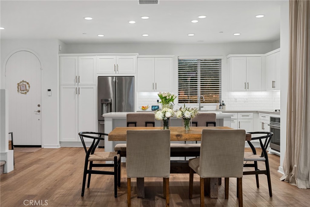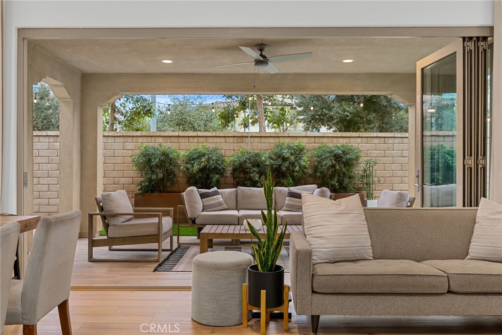 Located in the highly desirable Baker Ranch community in Lake Forest, this beautifully upgraded residence showcases exceptional design, modern efficiency, and flexible generation living space. Featuring 4 bedrooms and 3 bathrooms, this thoughtfully designed home offers an open-concept floorplan ideal for everyday living and entertaining. The chef-inspired kitchen includes quartz countertops, upgraded appliances, and an oversized island that opens seamlessly to the dining and living areas. Expansive 5 panel bi-fold doors create true indoor-outdoor living, providing direct access to the private backyard—perfect for entertaining. Extensive builder upgrades are found throughout, custom window treatments, recessed lighting, designer finishes and a two story built-in bookcase. Upstairs, the spacious primary suite features two walk-in closeets, dual vanities and upgraded finishes. Secondary bedrooms are generously sized. Enjoy resort-style amenities including pools, parks, trails, sports courts, clubhouses, and year-round community events. Conveniently located near shopping, dining, and top-rated schools. A rare opportunity to own a highly upgraded home in one of Orange County’s most sought-after master-planned communities.