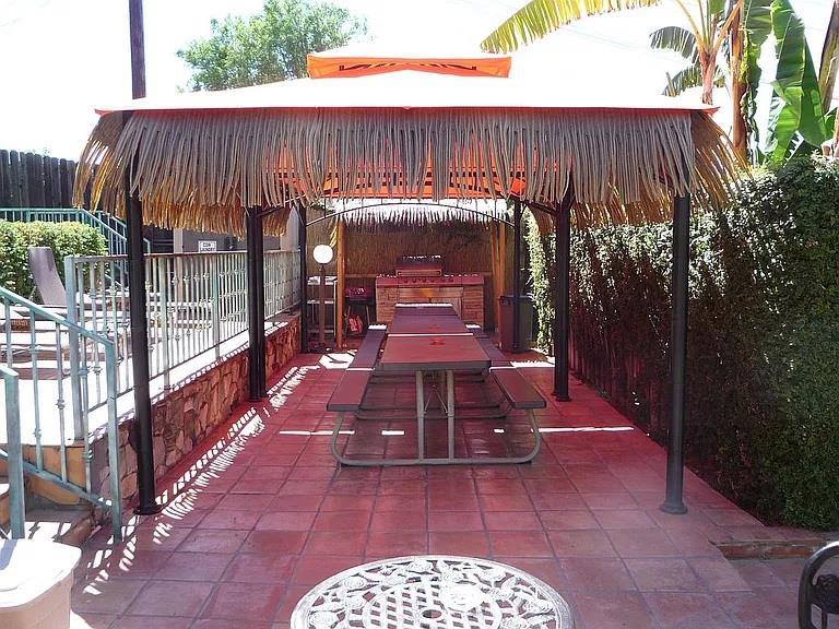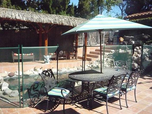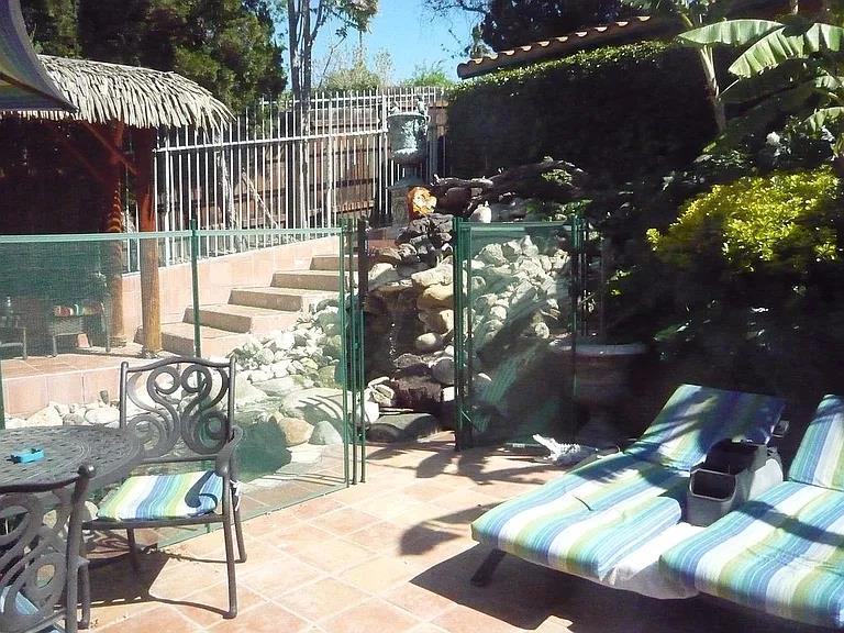 INVESTORS DREAM | MULTI-GENERATIONAL ESTATE | INCOME PRODUCING RESORT PROPERTY Rare, one-of-a-kind gated tropical mini-estate on a private 10,441 SF lot in prime South of the Blvd Woodland Hills, just minutes to Calabasas and the 101 Fwy. Fully furnished main residence plus four fully furnished guest houses. Resort-style grounds feature a natural rock waterfall flowing into a lagoon-style lap pool, heated spa, Tiki Hut cabana, outdoor Tiki bar, gazebo dining pavilion with BBQ area, fire pit, tanning deck, and private woodsy yards. Electric gates and 24/7 CCTV surveillance. Main home highlights include custom 50s diner kitchen with original antique stainless steel oven, imported NY tin ceilings, Beverly Hills estate fireplace mantle, skylights, natural oak flooring, custom tile bath with Jacuzzi tub, hidden panic room with safe. Guest units each uniquely themed. Large architect-designed ADU configured as one large unit or two side-by-side units. Owner will transfer established short-term rental and film location business contacts at COE (buyer to verify city rental regulations and permits). Near Old Town Calabasas, Warner Center, shopping, dining, studios, and major airports. All furnishings, décor, Hollywood memorabilia, appliances, and personal property included.
