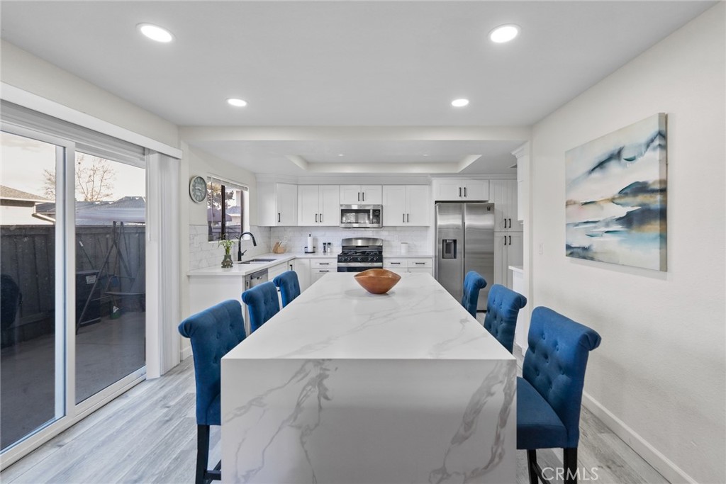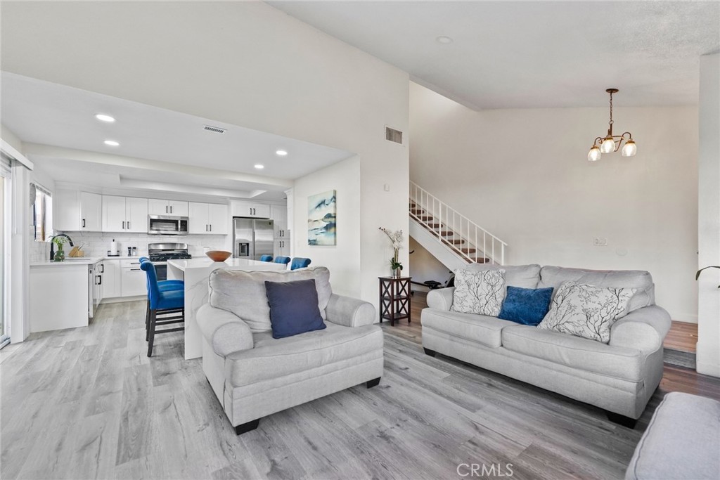 Welcome to this beautifully upgraded residence offering the perfect blend of comfort, style, and modern sophistication. This spacious home features three light-filled bedrooms, each designed to maximize natural light and create a warm, inviting ambiance. The generously sized bathrooms have been thoughtfully updated with elegant new vanities, adding a refined touch throughout. Freshly painted interiors, new carpeting across the entire second level, and 36 newly installed recessed lights create a bright, contemporary atmosphere that feels both upscale and welcoming. Every bedroom includes ceiling fans for year-round comfort, while a new air-conditioning system and water heater provide efficiency and peace of mind. The AC unit has been strategically relocated to the upper level for optimal performance, ensuring the bedrooms cool first for enhanced comfort. Step outside to enjoy sweeping mountain views from the expansive wraparound patio — an ideal setting for family barbecues, entertaining guests, or simply relaxing in your own private retreat. The fully remodeled chef’s kitchen is a true showpiece, featuring a stunning oversized island with seating for six and a sleek waterfall-edge design, perfect for both casual dining and elegant gatherings. New blinds throughout the home offer style, privacy, and comfort in every room. HOA amenities add exceptional value by covering water, trash service, landscaping, exterior maintenance, and 24/7 security, allowing for a low-maintenance lifestyle. Ideally located near the 210 and 215 freeways, the property is just minutes from shopping and everyday conveniences, including Ralphs and Stater Bros. Markets, as well as restaurants, cafés, and essential services.